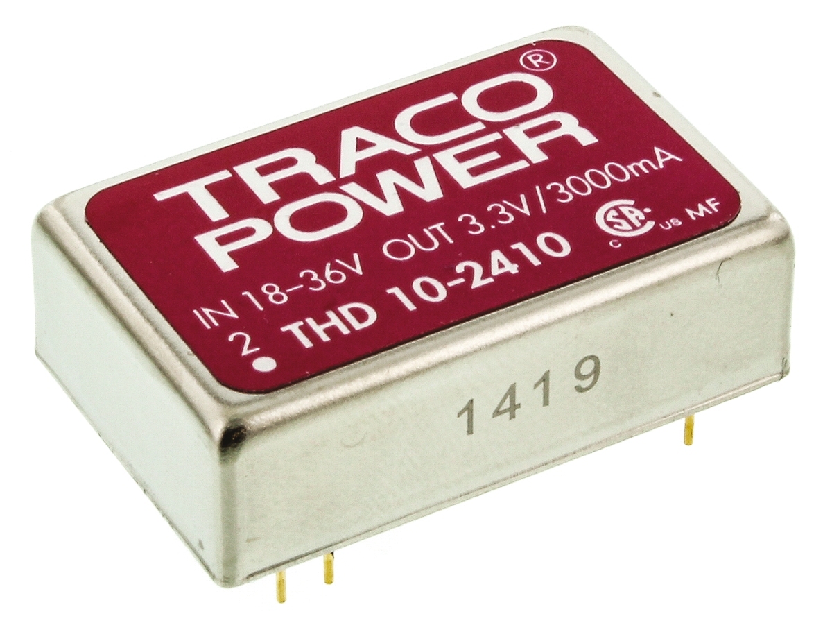 This is Through Hole 10W Isolated DC-DC Converter Vin 18 → 36 V dc I/O isolation 1500V dc Vout 3.3V dc manufactured by TRACOPOWER. The manufacturer part number is THD 10-2410. Additionally, the product is supplied with 1 outputs. Load Regulation - ±1.2%. It has 1.5kv dc isolation voltage. It is a highly efficient product with an 85% of high efficiency. The product is available in through hole configuration. It is shipped in dip 24 package . The product has +71°c maximum temperature. The product thd 10, is a highly preferred choice for users. It has 18 → 36 v dc of input voltage range. Its accurate length is 32mm. Isolated options - yes. Furthermore, the product is 20mm wide. The product comes in 10mm depth. Features a 3.3v dc output voltage. While its minimum temperature is -40°c. It has 24 v dc of nominal input voltage. Feature 10w of power rating. It carries 3a output current.