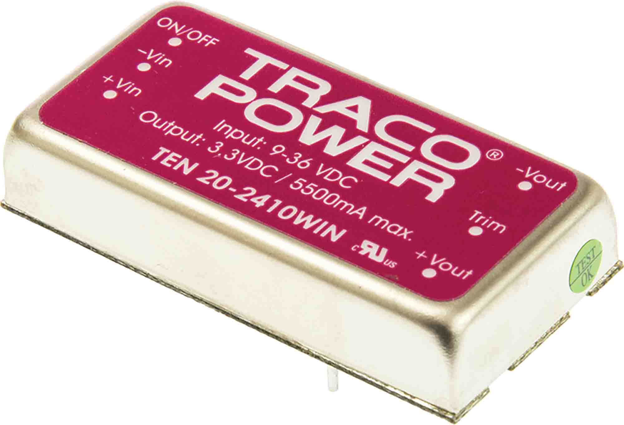 This is TEN 20WIN 20W Isolated DC-DC Converter Through Hole Vin 9 → 36 V dc Vout 3.3V dc manufactured by TRACOPOWER. The manufacturer part number is TEN 20-2410WIN. Additionally, the product is supplied with 1 outputs. Load Regulation - ±0.5%. It has 1.5kv dc isolation voltage. It is a highly efficient product with an 85% of high efficiency. The product is available in through hole configuration. It is shipped in 2 x 1 in package . The product has +85°c maximum temperature. The product ten 20win, is a highly preferred choice for users. It has 9 → 36 v dc of input voltage range. Its accurate length is 50.8mm. Isolated options - yes. Furthermore, the product is 25.4mm wide. The product comes in 10.2mm depth. Features a 3.3v dc output voltage. While its minimum temperature is -40°c. It has 24 v dc of nominal input voltage. Feature 20w of power rating. It carries 5.5a output current.