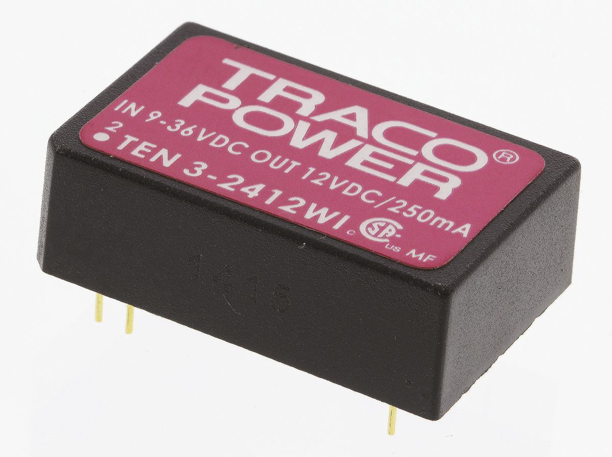This is TEN 3WI 3W Isolated DC-DC Converter Through Hole Vin 9 → 36 V dc Vout 12V dc manufactured by TRACOPOWER. The manufacturer part number is TEN 3-2412WI. Additionally, the product is supplied with 1 outputs. Load Regulation - ±1%. It has 1.5kv dc isolation voltage. It is a highly efficient product with an 81% of high efficiency. The product is available in through hole configuration. It is shipped in dip 24 package . The product has +85°c maximum temperature. The product ten 3wi, is a highly preferred choice for users. It has 9 → 36 v dc of input voltage range. Its accurate length is 32mm. Isolated options - yes. Furthermore, the product is 20mm wide. The product comes in 10.2mm depth. Features a 12v dc output voltage. While its minimum temperature is -40°c. It has 24 v dc of nominal input voltage. Feature 3w of power rating. It carries 250ma output current.