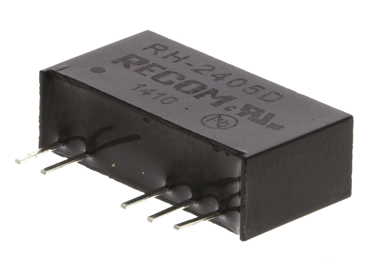 This is RH 1W Isolated DC-DC Converter Through Hole Vin 21.6 → 26.4 V dc Vout ±5V dc I/O isolation 3kV dc manufactured by Recom. The manufacturer part number is RH-2405D. Additionally, the product is supplied with 2 outputs. It has 3kv dc isolation voltage. It carries ±100ma output current. The product is available in through hole configuration. It is shipped in sip package . The product has +85°c maximum temperature. The product rh, is a highly preferred choice for users. It has 21.6 → 26.4 v dc of input voltage range. Its accurate length is 19.6mm. Isolated options - yes. The product comes in 10.2mm depth. Features a ±5v dc output voltage. While its minimum temperature is -40°c. It has 24 v dc of nominal input voltage. Feature 1w of power rating.