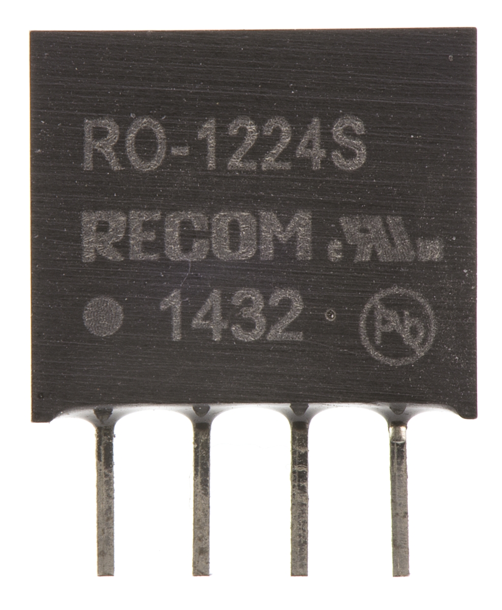 This is RO 1W Isolated DC-DC Converter Through Hole Vin 10.8 → 13.2 V dc Vout 24V dc I/O isolation 1kV dc manufactured by Recom. The manufacturer part number is RO-1224S. Additionally, the product is supplied with 1 outputs. It has 1kv dc isolation voltage. It carries 42ma output current. The product is available in through hole configuration. It is shipped in sip package . The product has +85°c maximum temperature. The product ro, is a highly preferred choice for users. It has 10.8 → 13.2 v dc of input voltage range. Isolated options - yes. The product comes in 10mm depth. Features a 24v dc output voltage. Its accurate length is 11.5mm. While its minimum temperature is -40°c. It has 12 v dc of nominal input voltage. Feature 1w of power rating.
