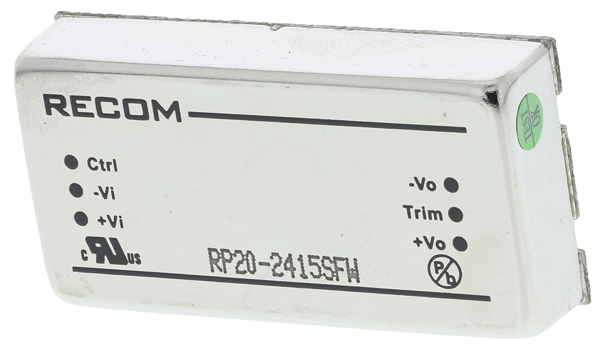 This is RP20 FW 20W Isolated DC-DC Converter Through Hole Vin 9 → 36 V dc Vout 15V dc I/O isolation 1.6kV manufactured by Recom. The manufacturer part number is RP20-2415SFW. Additionally, the product is supplied with 1 outputs. Load Regulation - ±0.5%. It has 1.6kv dc isolation voltage. It carries 1.33a output current. The product is available in through hole configuration. It is shipped in 2 x 1 in package . The product has +105°c maximum temperature. The product rp20-fw, is a highly preferred choice for users. It has 9 → 36 v dc of input voltage range. Isolated options - yes. The product comes in 10.2mm depth. Features a 15v dc output voltage. Its accurate length is 25.4mm. While its minimum temperature is -40°c. It has 24 v dc of nominal input voltage. Feature 20w of power rating.
