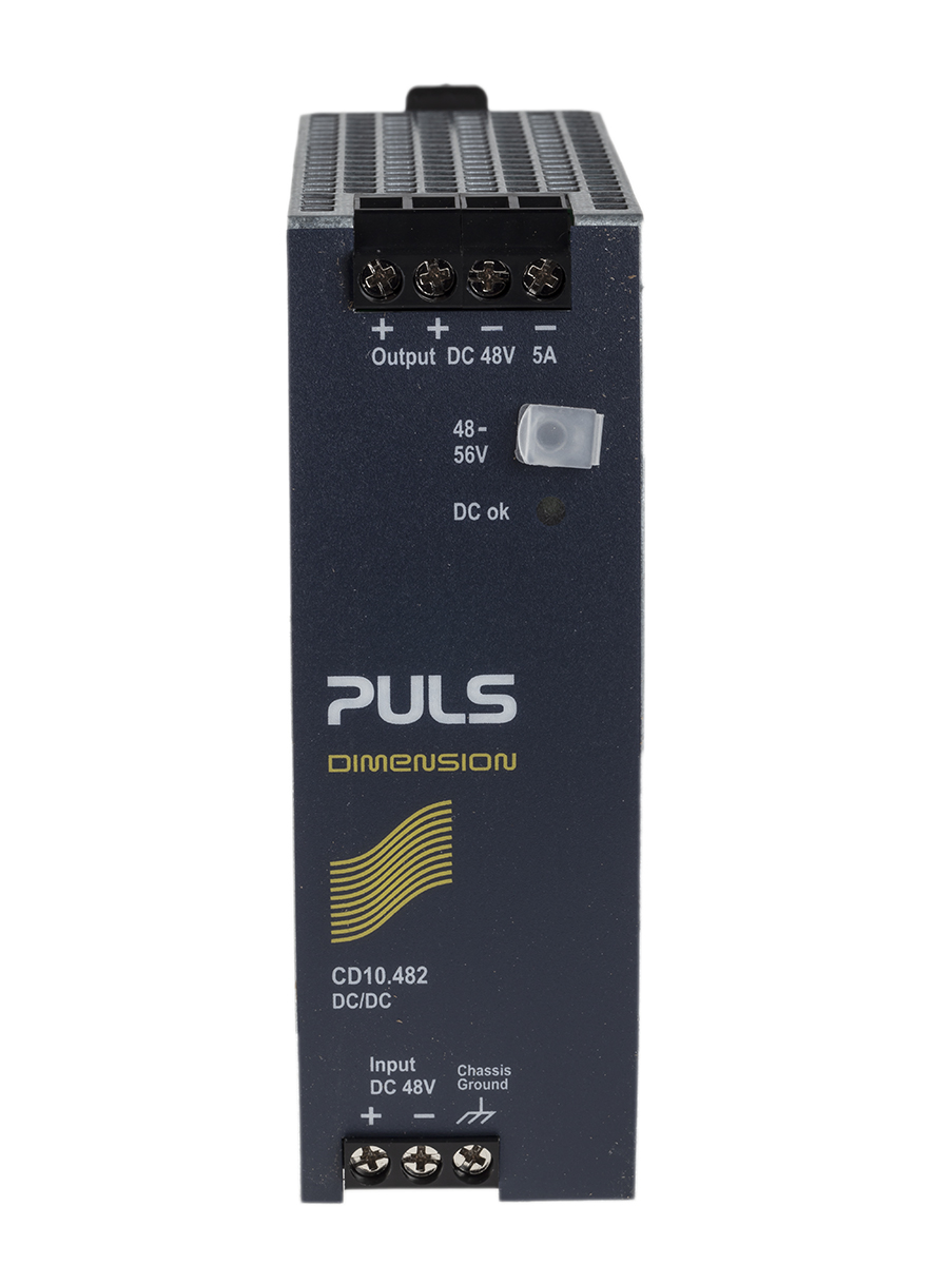 This is CD 240W Isolated DC-DC Converter DIN Rail Mount Vout 48V dc manufactured by PULS. The manufacturer part number is CD10.482. Additionally, the product is supplied with 1 outputs. Load Regulation - 200mv. It has 1.5kv dc isolation voltage. The product complies with all safety standards, such as ansi/ul 61010-2-201, atex en 60079-0, atex en 60079-7, ce certified, culus listed, gl listed, iecee iec 61010-2-201, iecex iec 60079-0, iecex iec 60079-7, ul 508. The product is available in din rail mount configuration. Furthermore, the product is 117mm wide. The product has +70°c maximum temperature. The product cd, is a highly preferred choice for users. It has 36 → 60 v dc of input voltage range. Isolated options - yes. It is a highly efficient product with an 95.1% of high efficiency. The product comes in 124mm depth. Features a 48v dc output voltage. Its accurate length is 42mm. While its minimum temperature is -25°c. It has 48 v dc of nominal input voltage. Feature 240w of power rating. It carries 5a output current.