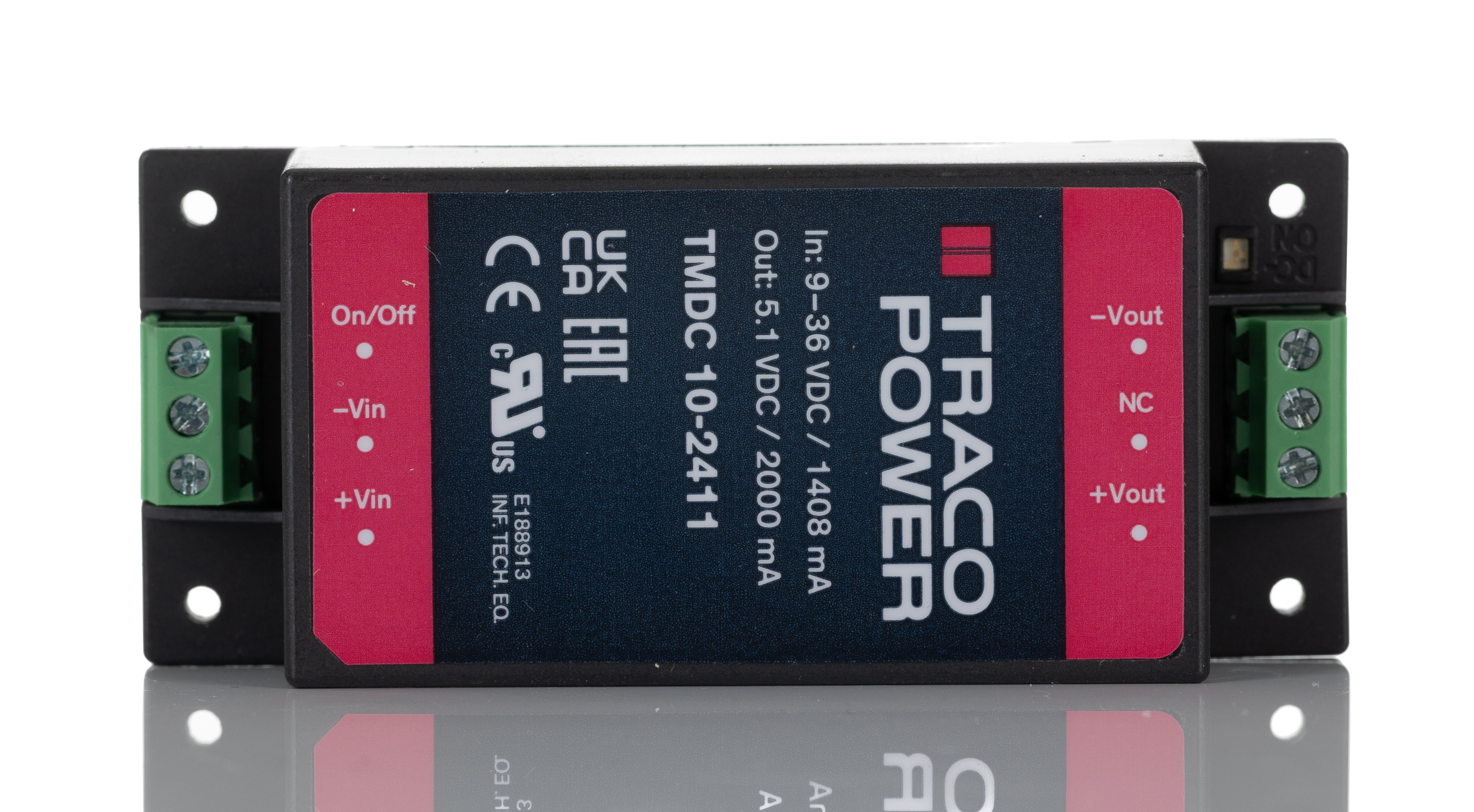 This is DC/DC Converter Isolated 5.1V 10W manufactured by TRACOPOWER. The manufacturer part number is TMDC 10-2411. Additionally, the product is supplied with 1 outputs. Load Regulation - 0.005. It has 3kv dc isolation voltage. It is a highly efficient product with an 84% of high efficiency. The product is available in chassis mount configuration. It is shipped in encapsulated package . The product has +80°c maximum temperature. The product tmdc 10, is a highly preferred choice for users. It has 9 → 36 v dc of input voltage range. Its accurate length is 79mm. Isolated options - yes. Furthermore, the product is 34mm wide. The product comes in 22mm depth. Features a 5.1v dc output voltage. While its minimum temperature is -40°c. It has 24 v dc of nominal input voltage. Feature 10w of power rating. It carries 2a output current. The product complies with all safety standards, such as en 62368-1.