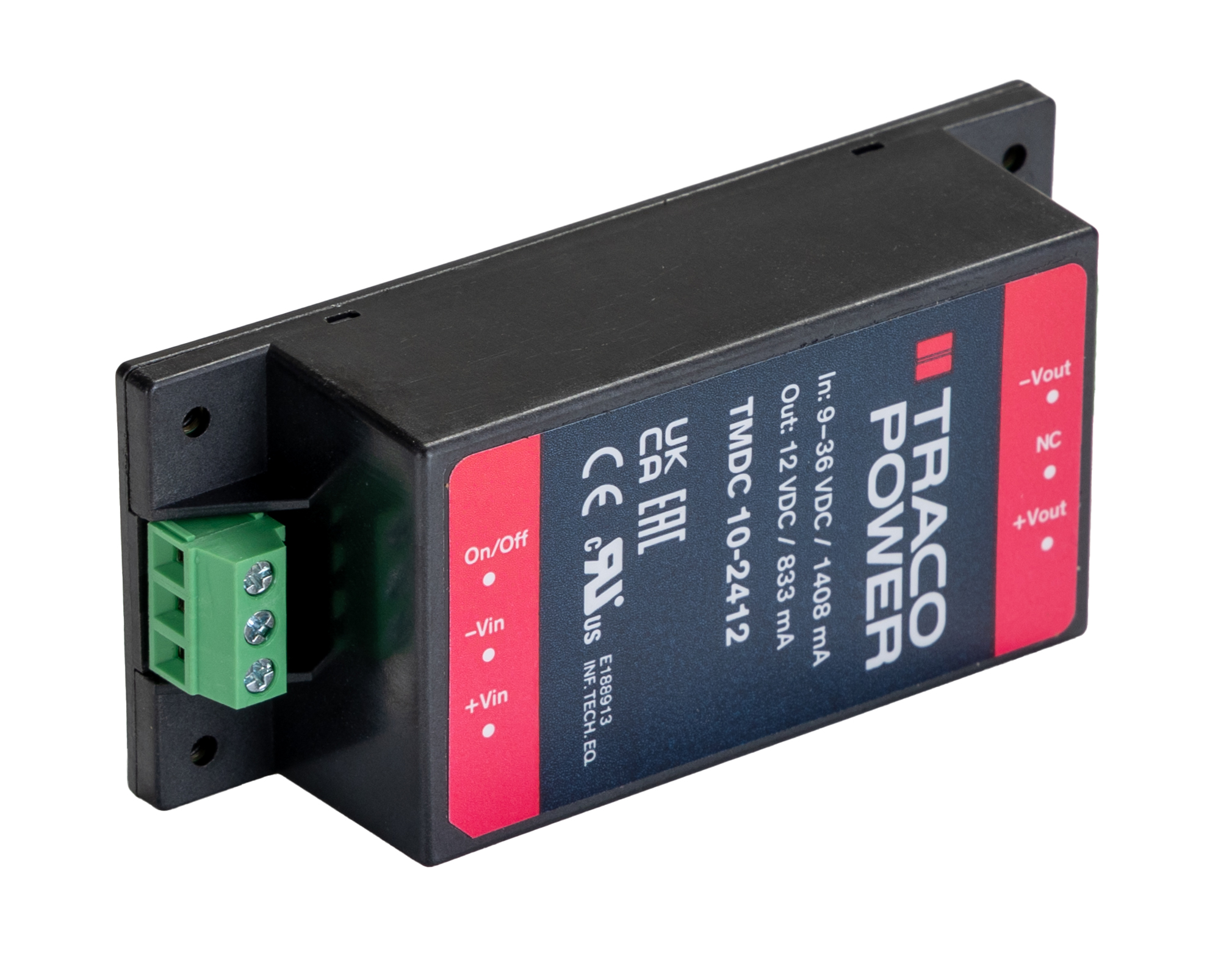 This is DC/DC Converter Isolated 12V 10W manufactured by TRACOPOWER. The manufacturer part number is TMDC 10-2412. It has 3kv dc isolation voltage. While its minimum temperature is -40°c. Isolated options - yes. Furthermore, the product is 34mm wide. The product has +80°c maximum temperature. Load Regulation - 0.005. The product complies with all safety standards, such as iec/en 62368-1. The product is railway approved no . It is a highly efficient product with an 86% of high efficiency. Additionally, the product is supplied with 1 outputs. It is shipped in encapsulated package . Its accurate length is 79mm. Medical Approval - no. It carries 833ma output current. The product is available in chassis mount configuration. The product tmdc 10, is a highly preferred choice for users. It has 9 → 36 v dc of input voltage range. The product comes in 22mm depth. Features a 12v dc output voltage. It has 24 v dc of nominal input voltage. Feature 10w of power rating.
