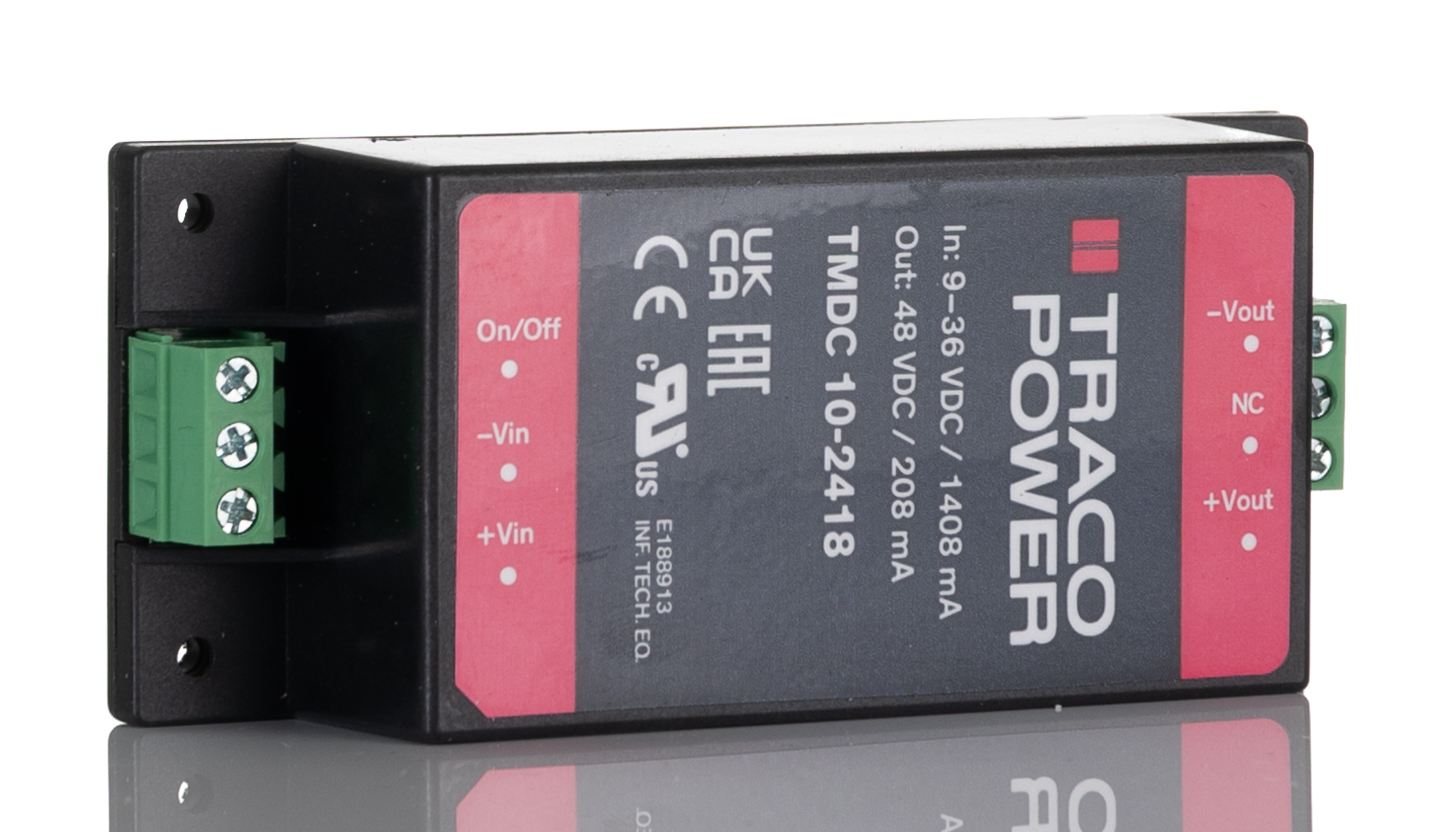 This is DC/DC Converter Isolated 48V 10W manufactured by TRACOPOWER. The manufacturer part number is TMDC 10-2418. Additionally, the product is supplied with 1 outputs. Load Regulation - 0.005. It has 3kv dc isolation voltage. It is a highly efficient product with an 84% of high efficiency. The product is available in chassis mount configuration. It is shipped in encapsulated package . The product has +80°c maximum temperature. The product tmdc 10, is a highly preferred choice for users. It has 9 → 36 v dc of input voltage range. Its accurate length is 79mm. Isolated options - yes. Furthermore, the product is 34mm wide. The product comes in 22mm depth. Features a 48v dc output voltage. While its minimum temperature is -40°c. It has 24 v dc of nominal input voltage. Feature 10w of power rating. It carries 208ma output current. The product complies with all safety standards, such as iec/ul 60950-1.