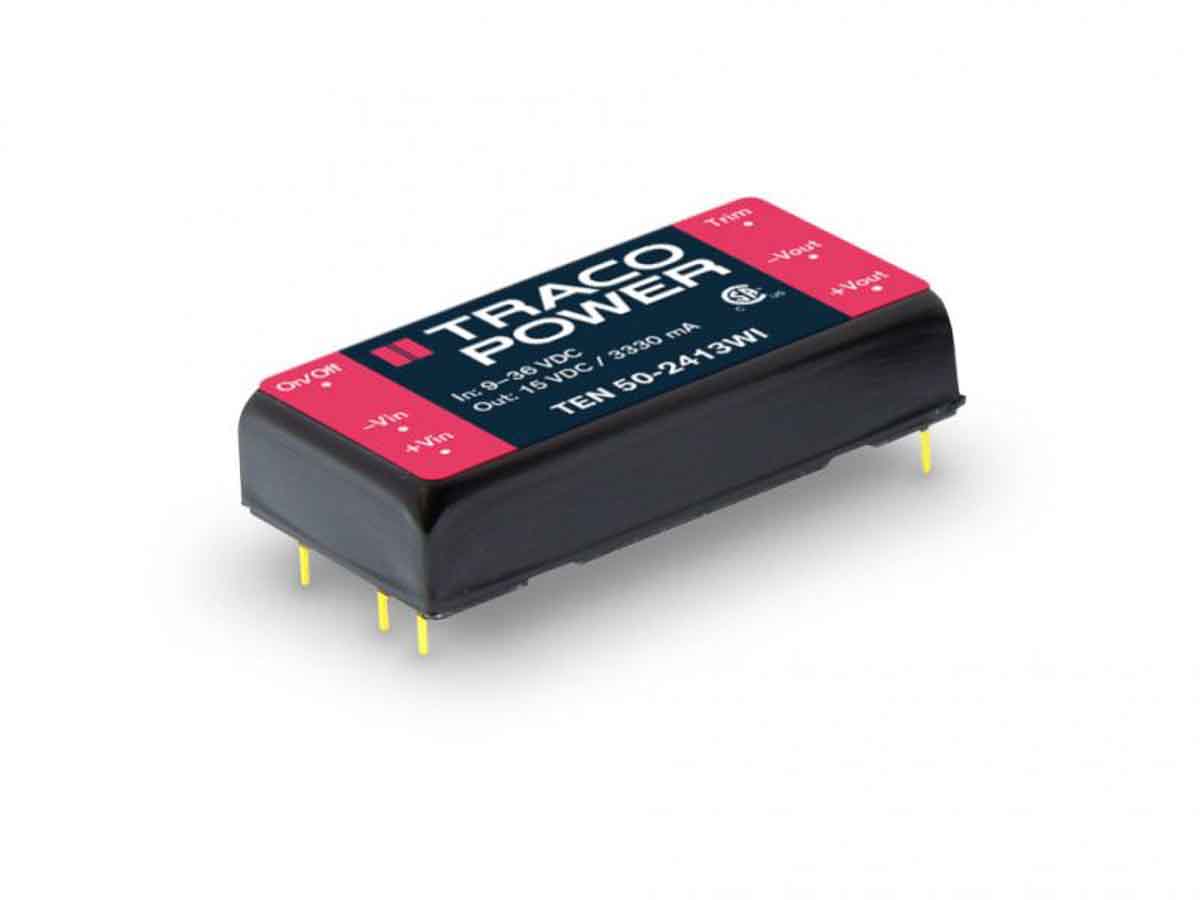 This is TEN 50 50W DC-DC Converter Through Hole Voltage in 9 → 36 V dc Voltage out 3.3V dc manufactured by TRACOPOWER. The manufacturer part number is TEN 50-2410WI. Load Regulation - 0.005. It has 1.5kv dc isolation voltage. It carries 10a output current. The product is available in through hole configuration. Furthermore, the product is 50.8mm wide. The product has +80°c maximum temperature. The product ten 50, is a highly preferred choice for users. It has 9 → 36 v dc of input voltage range. Its accurate length is 25.4mm. The product is railway approved no . It is a highly efficient product with an 0.9 of high efficiency. The product comes in 11mm depth. Features a 3.3v dc output voltage. Medical Approval - no. While its minimum temperature is -40°c. It has 24 v dc of nominal input voltage. Feature 50w of power rating.