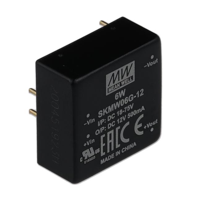 This is manufactured by MEAN WELL USA Inc.. The manufacturer part number is SKMW06G-12. It is assigned with possible HTSUS value of 8504.40.9580. The product is rohs3 compliant. It has a 12v output voltage. The product features power and watts of 6 w. The maximum product's output current is 500ma. It is approved by ce, curus, eac. Moreover, the product comes in 5-dip module, 4 leads. It offers 18v of minimum input voltage. It comes in isolated module configuration. The product is widely employed in ite (commercial). In addition, it is reach unaffected. It is a highly efficient product with an 85% of high efficiency. Its maximum input voltage is 75v. The product's diameters include 1.00" l x 1.00" w x 0.46" h (25.4mm x 25.4mm x 11.7mm). 1.5 kv of isolation voltage. Its typical moisture sensitivity level is not applicable. The product is available in through hole configuration. The product skmw06 (6w), is a highly preferred choice for users. The product has -40°c ~ 85°c (with derating) operating temperature range. In addition, tube is the available packaging type of the product. Moreover, it corresponds to skmw06, a base product number of the product. Additionally, the product is supplied with 1 outputs. The product is designated with the ear99 code number.