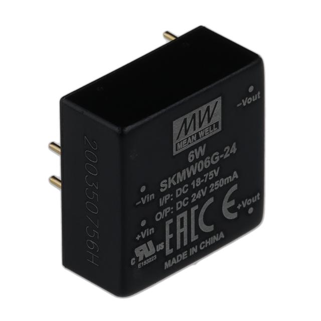 This is manufactured by MEAN WELL USA Inc.. The manufacturer part number is SKMW06G-24. It is assigned with possible HTSUS value of 8504.40.9580. The product is rohs3 compliant. It has a 24v output voltage. The product features power and watts of 6 w. The maximum product's output current is 250ma. It is approved by ce, curus, eac. Moreover, the product comes in 5-dip module, 4 leads. It offers 18v of minimum input voltage. It comes in isolated module configuration. The product is widely employed in ite (commercial). In addition, it is reach unaffected. It is a highly efficient product with an 86% of high efficiency. Its maximum input voltage is 75v. The product's diameters include 1.00" l x 1.00" w x 0.46" h (25.4mm x 25.4mm x 11.7mm). 1.5 kv of isolation voltage. Its typical moisture sensitivity level is not applicable. The product is available in through hole configuration. The product skmw06 (6w), is a highly preferred choice for users. The product has -40°c ~ 85°c (with derating) operating temperature range. In addition, tube is the available packaging type of the product. Moreover, it corresponds to skmw06, a base product number of the product. Additionally, the product is supplied with 1 outputs. The product is designated with the ear99 code number.