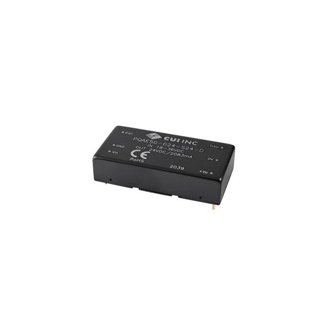 This is manufactured by CUI Inc.. The manufacturer part number is PQAE50-D24-S15-D. Moreover, it corresponds to pqae50, a base product number of the product. It is assigned with possible HTSUS value of 8504.40.9580. The product is rohs compliant. It has a 15v output voltage. The product features power and watts of 50 w. The maximum product's output current is 3.333a. It is approved by ce. Moreover, the product comes in 6-dip module. It offers 18v of minimum input voltage. It comes in isolated module configuration. The product is widely employed in ite (commercial). In addition, it is reach unaffected. It is a highly efficient product with an 91% of high efficiency. Its maximum input voltage is 36v. It is shipped in tube package . The product's diameters include 2.00" l x 1.00" w x 0.46" h (50.8mm x 25.4mm x 11.8mm). It has a long 24 weeks standard lead time. 1.5 kv of isolation voltage. Its typical moisture sensitivity level is 1 (unlimited). The splendid features of the product include adjustable output, remote on/off. The product is available in through hole configuration. The product pqae50 (50w), is a highly preferred choice for users. The product has -40°c ~ 105°c (with derating) operating temperature range. Standard number include: 62368-1. Additionally, the product is supplied with 1 outputs. The product is designated with the ear99 code number.