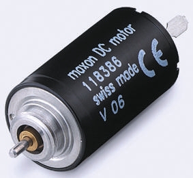 This is Brushed DC Motor 0.75 W 6 V dc 0.784 mNm 13000 rpm 1mm Shaft Diameter manufactured by Maxon. The manufacturer part number is 118386. The diameter of the shaft is 1mm. The product has a current rating of 190 ma. The given dimensions of the product include 10 (dia.) x 17 mm. Its output speed is 13000 rpm . Its maximum output torque is about 0.784 mnm . In addition, in includes a brushed type DC motor . Its accurate length is 17mm. Features 6 v dc supply voltage. Feature 0.75 w of power rating. Moreover, it has a/an ironless core construction .
