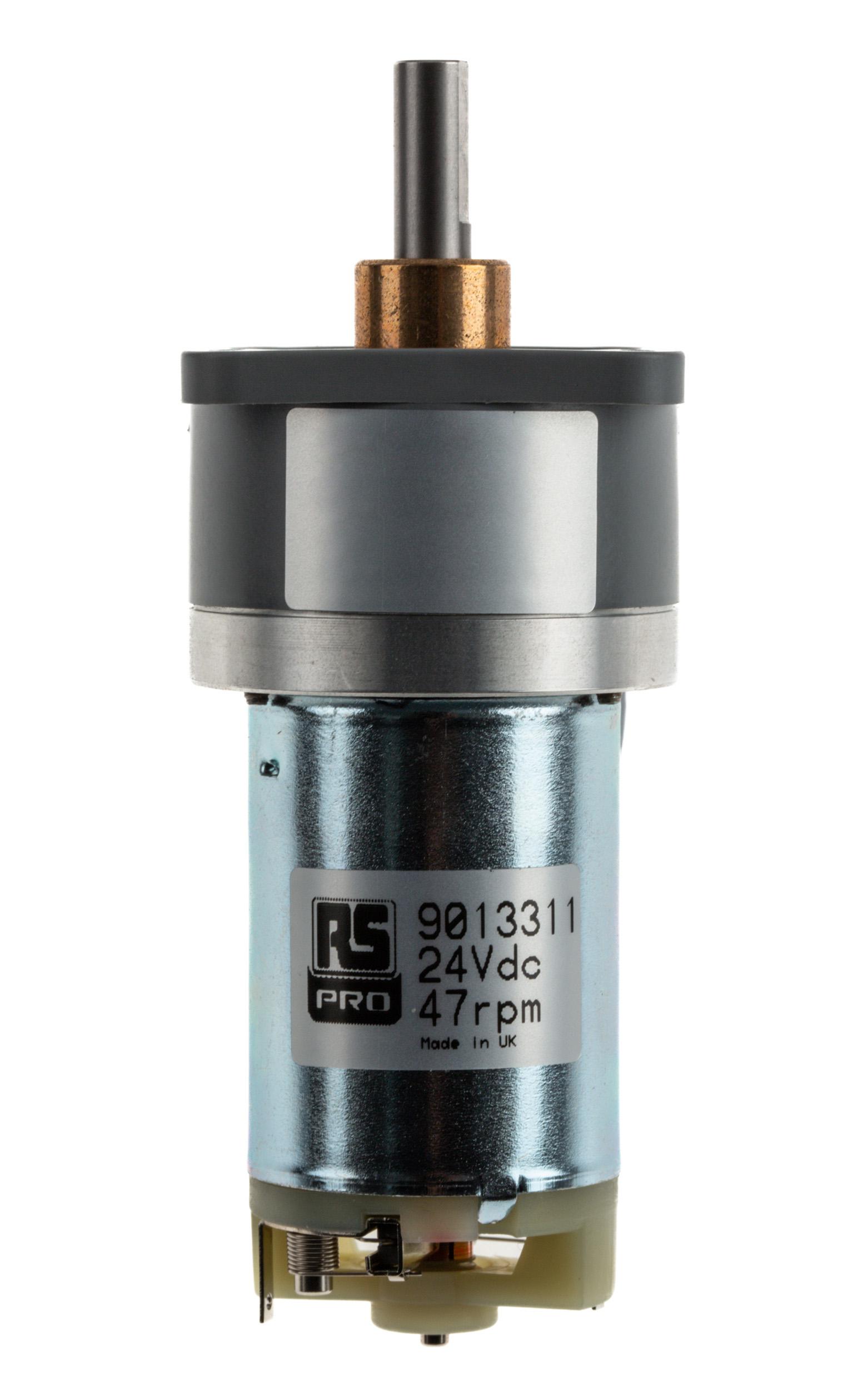 This is 24 V dc 300 mNm Brushed DC Geared Motor Output Speed 47 rpm manufactured by RS Pro. The manufacturer part number is 901-3311. The diameter of the shaft is 6mm. The given dimensions of the product include 73.7 x 38 x 38 mm. In addition, in includes a brushed geared type DC motor . Its gear ratio is 100:1 . It has an adorable spur type gearhead . Its accurate length is 73.7mm. Moreover, it has a/an iron core core construction . Its maximum output torque is about 30 ncm . Furthermore, the product is 38mm wide. The product comes in 38mm depth. Features 24 v dc supply voltage. Its output speed is 47 rpm . The product complies with all safety standards, such as rohs compliant.