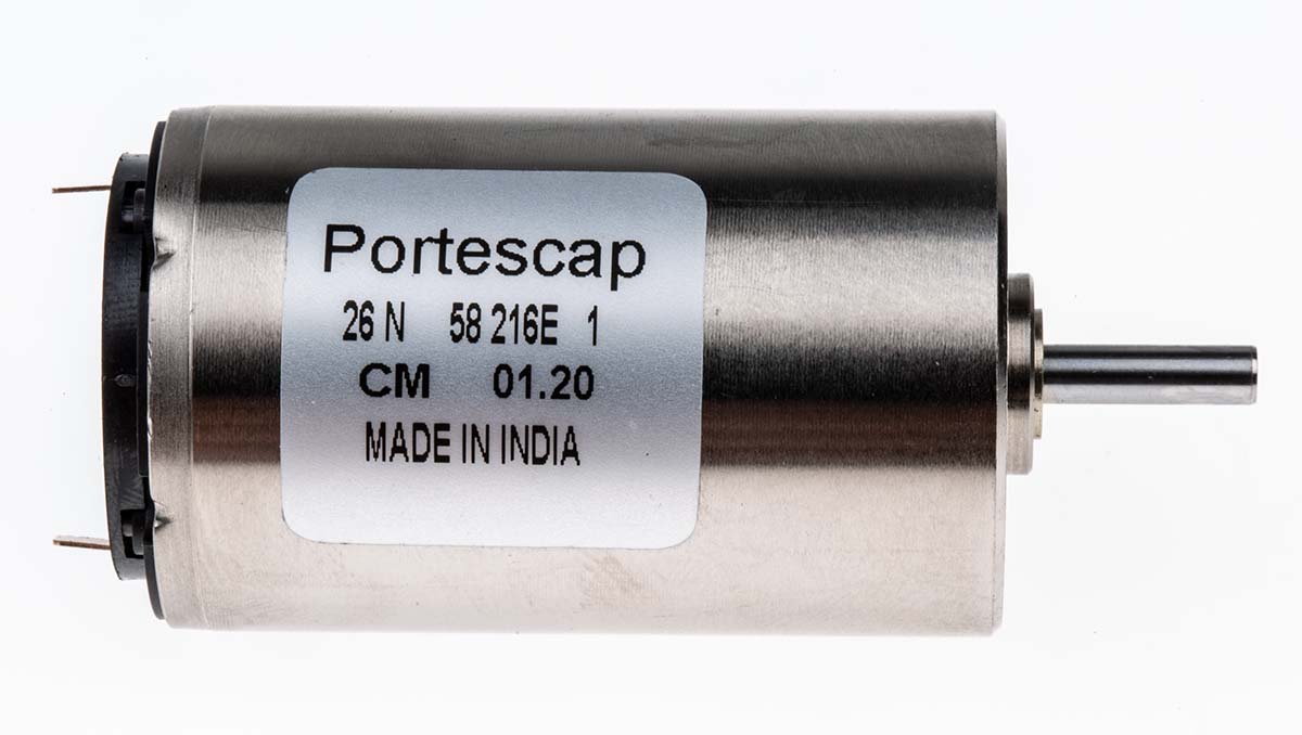 The Portescap DC Motor model 26N58 216E.1 is a compact yet powerful brushed DC motor delivering approximately 5.75 W at 12 V DC. Its ironless core design ensures ultra low inertia, offering smooth and responsive operation ideal for precision applications. With a 3 mm shaft, overall diameter of 26 mm and length of just 43.3 mm, this motor is engineered for efficient, high torque performance in a petite footprint, making it a standout choice for automation, instrumentation, robotics or medical devices.