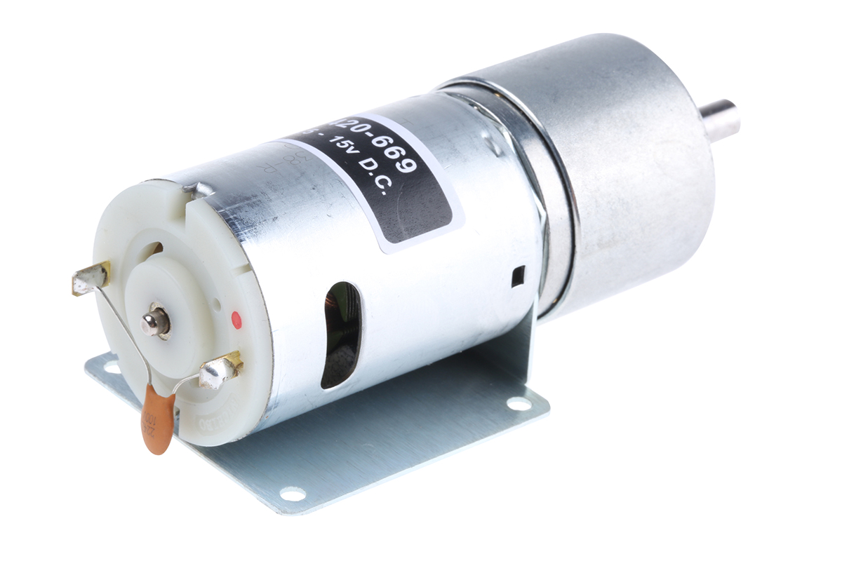 This is 12 V 4.5 → 15 V dc 3000 gcm Brushed DC Geared Motor Output Speed 256 rpm manufactured by RS Pro. The manufacturer part number is 420-669. The diameter of the shaft is 6mm. The product has a current rating of 2.81 a. In addition, in includes a brushed geared type DC motor . Its gear ratio is 47:1 . It has an adorable spur type gearhead . Its maximum output torque is about 29 ncm . Furthermore, the product is 37mm wide. Its accurate length is 79.1mm. Features 12 v dc supply voltage. Feature 21.2w of power rating. Moreover, it has a/an iron core core construction .