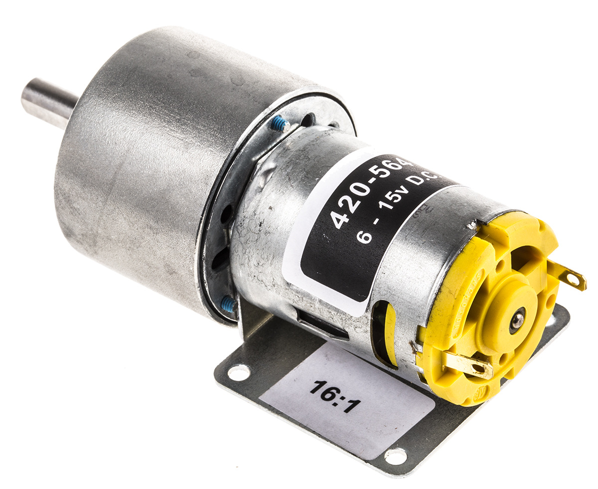 This is 6 → 15 V dc 915 gcm Brushed DC Geared Motor Output Speed 617 rpm manufactured by RS Pro. The manufacturer part number is 420-564. The diameter of the shaft is 6mm. The product has a current rating of 990 ma. In addition, in includes a brushed geared type DC motor . The product 980d, is a highly preferred choice for users. Its output speed is 617 rpm . It has an adorable spur type gearhead . Its maximum output torque is about 9 ncm . Furthermore, the product is 37mm wide. Its accurate length is 70mm. Features 6 → 15 v dc supply voltage. Feature 7.9 w of power rating. Moreover, it has a/an iron core core construction .