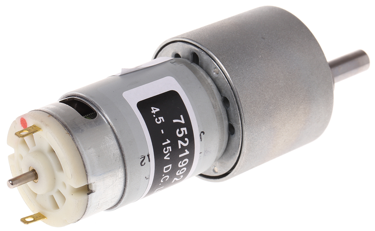 This is DC Motor 7 W 4.5 → 15 V 114 gcm 7300 rpm 6mm Shaft Diameter manufactured by RS Pro. The manufacturer part number is 752-1992. The diameter of the shaft is 6mm. The product has a current rating of 840 ma. The given dimensions of the product include 37 (dia.) x 76.1 mm. In addition, in includes a geared type DC motor . Its output speed is 7300 rpm . Its maximum output torque is about 114 gcm . Furthermore, the product is 37 (dia.)mm wide. Its accurate length is 73.6mm. Features 4.5 → 15 v dc supply voltage. Feature 7 w of power rating. Moreover, it has a/an metal core construction .