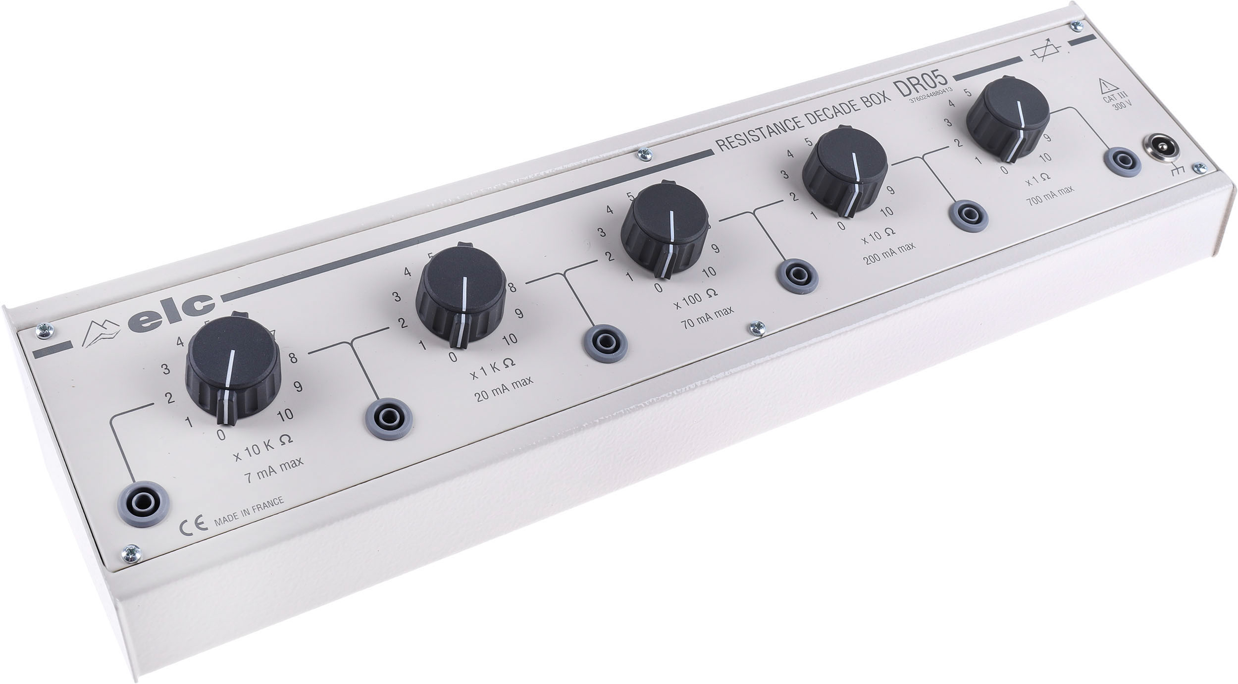 This is Decade Box Decade Box Type Resistance Resistance Resolution 1Ω Best Maximum Resistance Accuracy ±1% 0.5W manufactured by ELC. The manufacturer part number is DR 05. The given dimensions of the product include 305 x 96 x 68.5mm. The typical product's weight is 1.4kg. Additionally, it has 1ω of minimum inductance . It exhibits an excellent temperature coefficient of ±50ppm/°c. In addition, the height is 68.5mm. Furthermore, the product is 96mm wide. Its accurate length is 305mm. Its decade box type is resistance . The product features a 1ω of minimum resistance measurement . Feature 0.5w of power rating. Moreover, it has an absolute maximum 111.11kω resistance measurement . It has a resistance resolution about 1ω . With ±1% best maximum resistance accuracy .