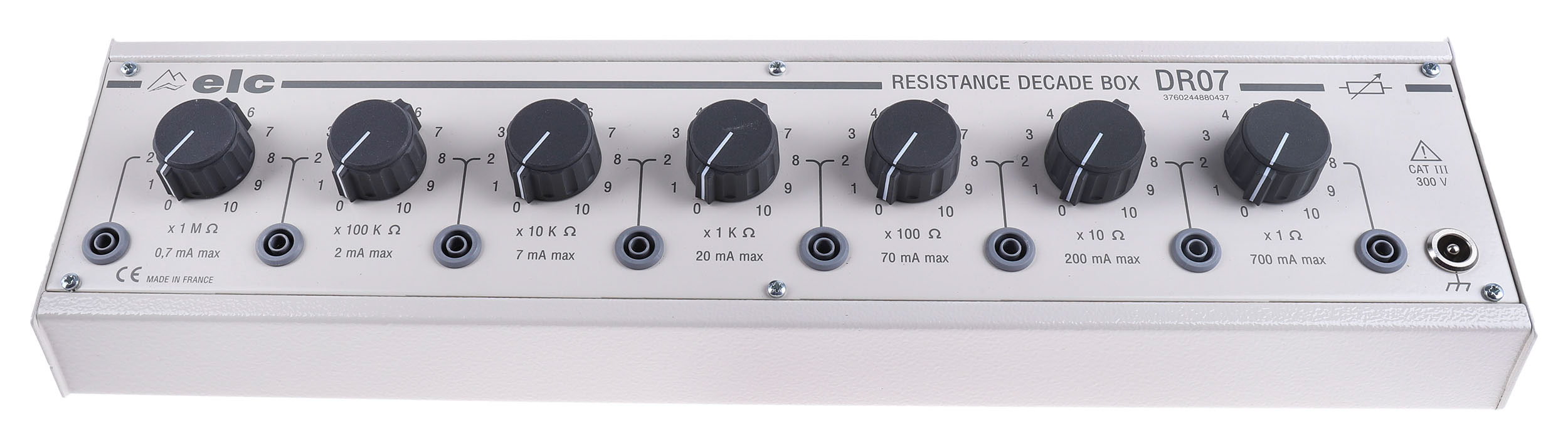 This is Decade Box Decade Box Type Resistance Resistance Resolution 1Ω Best Maximum Resistance Accuracy ±1% 0.5W manufactured by ELC. The manufacturer part number is DR 07. The given dimensions of the product include 305 x 96 x 68.5mm. The typical product's weight is 1.5kg. The product features a 1ω of minimum resistance measurement . It exhibits an excellent temperature coefficient of ±50ppm/°c. In addition, the height is 68.5mm. Furthermore, the product is 96mm wide. Its accurate length is 305mm. Its decade box type is resistance . Feature 0.5w of power rating. Moreover, it has an absolute maximum 11.111mω resistance measurement . It has a resistance resolution about 1ω . With ±1% best maximum resistance accuracy .