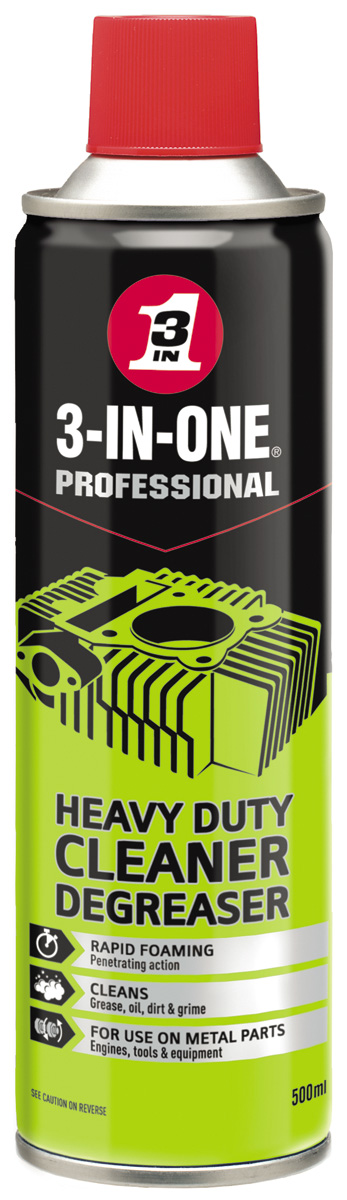 This is 3-in-1 H/duty cleaner degreaser500ml manufactured by 3-in-one. The manufacturer part number is 44615. It is of multi-purpose category . Applications Information involves cleaning, degreasing. The package is a sort of aerosol. Its package size is approximately 500 ml .