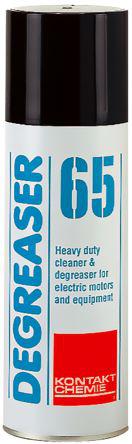 This is 200 ml Cleaner & Degreaser Aerosol for Electro Motors High Tension Switches Insulators Switchboards manufactured by CRC. The manufacturer part number is 11309. It is of solvent based category . It is assigned with a trade name of degreaser 65. Applications Information involves electro motors, high tension switches, insulators, switchboards. The package is a sort of aerosol. Its package size is approximately 200 ml .
