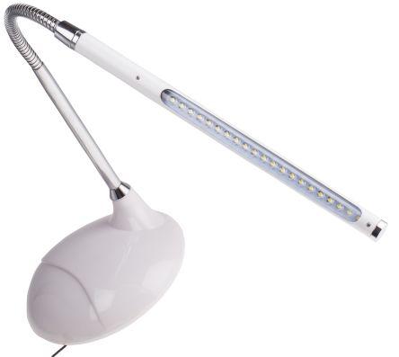 This is LED Desk Lamp Reach:300mm Adjustable Arm White manufactured by RS Pro. The manufacturer part number is 826-7844. It is rated with a EU energy efficiency. It has a maximum 300mm reach . It has a decent white colour. The plug is a highly reliable type c - europlug with long service life. In addition, the height is 300mm. It has a/an adjustable arm type arm . Designed as a desk base type. It is a type of led lamp.