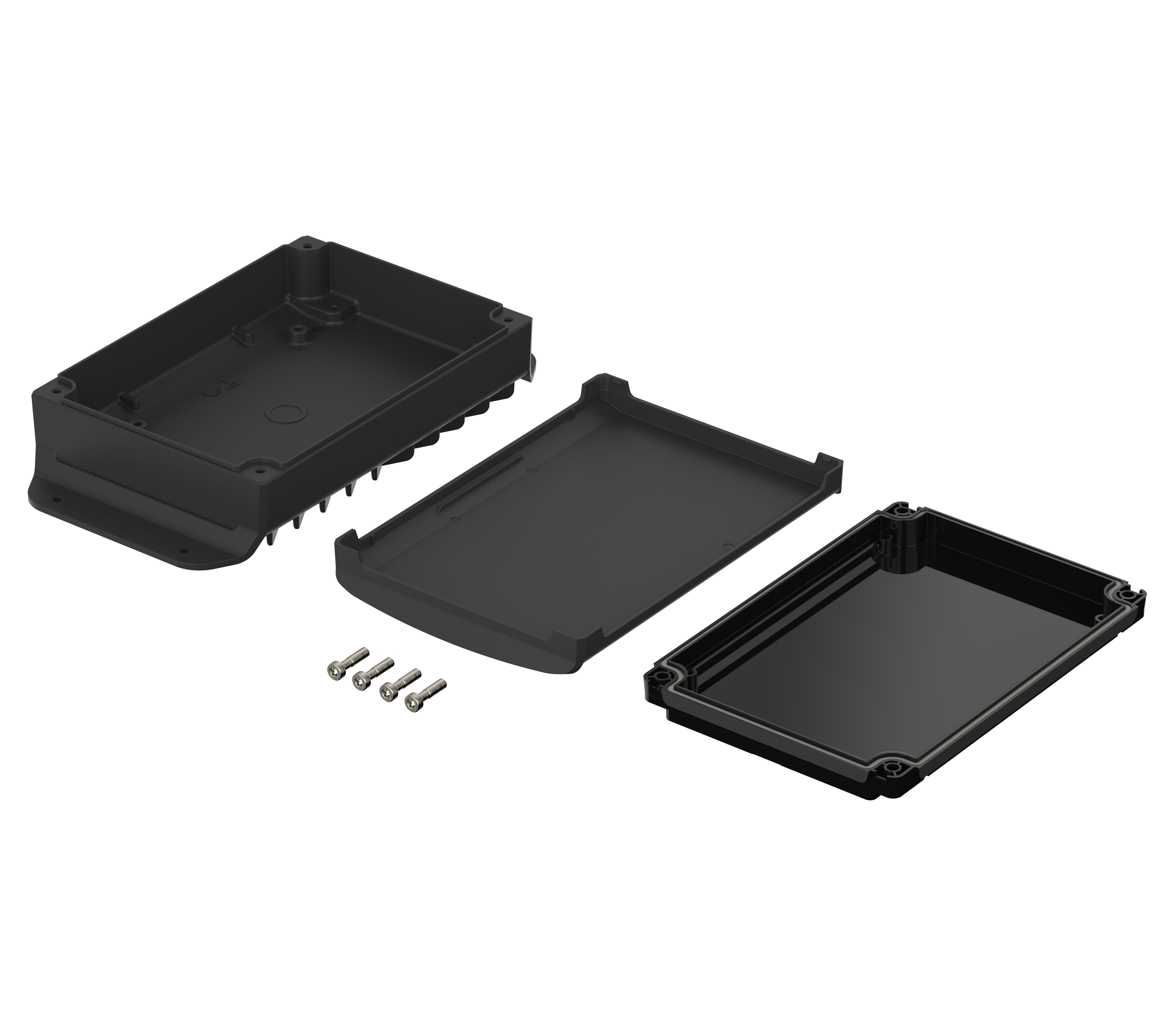 This is BoVersa Series Black Polycarbonate Desktop Enclosure 216 x 120 x 55.5mm manufactured by Bopla. The manufacturer part number is 48414355.HMT2. Its external length includes 216 mm. The product boversa, is a highly preferred choice for users. It has a decent black colour. The product's body is nicely designed from polycarbonate materials. Features 216 x 120 x 55.5mm external caliber. While its external height is 120 mm. The product is 55.5 mm wide.