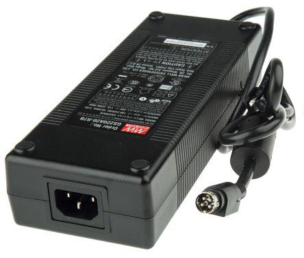 This is Desktop Power Supply 127 → 370 V dc 90 → 264 V ac 20V dc 11A Output Level V 1 Output manufactured by Mean Well. The manufacturer part number is GS220A20-R7B. It has 90 → 264 v ac, 127 → 370 v dc of input voltage range. Additionally, the product is supplied with 1 outputs. The product has +60°c maximum temperature. Furthermore, the product has an overall dimensions of 210 x 85 x 46mm. The product complies with all safety standards, such as erp compliant. The typical product's weight is 1.1kg. It has a standard r7b type output connection . While its minimum temperature is -10°c. It has an overall width of 85mm. The product has -10 → +60 °c of operating temperature range. The plug is a highly reliable type f - schuko plug, 3-pin uk with long service life. It is a highly efficient product with an 92% of high efficiency. Furthermore, its energy efficiency level is v . Input connector of iec320-c14. It has ±4% load regulation range . It has an overall length of 210mm. Similarly, the product has 46mm of overall depth. Moreover, its output current range is 11a . Furthermore, the cable has a 1000mm of length. It has a typical 20 v dc output voltage rating .