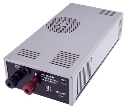 This is 22 → 29V dc Power Supply 5.2A manufactured by EA Elektro-Automatik. The manufacturer part number is EA-PS 524-05 T. It has 90 → 264 v ac of input voltage range. Additionally, the product is supplied with 1 outputs. Furthermore, the product has an overall dimensions of 226 x 110 x 58mm. The typical product's weight is 1.7kg. The product ea-ps 500, is a highly preferred choice for users. It has an overall width of 110mm. It is a highly efficient product with an 78% of high efficiency. It has a typical 22 → 29v dc output voltage rating . It has an overall length of 226mm. Similarly, the product has 58mm of overall depth. Moreover, its output current range is 5.2a . Input connector of iec 320.