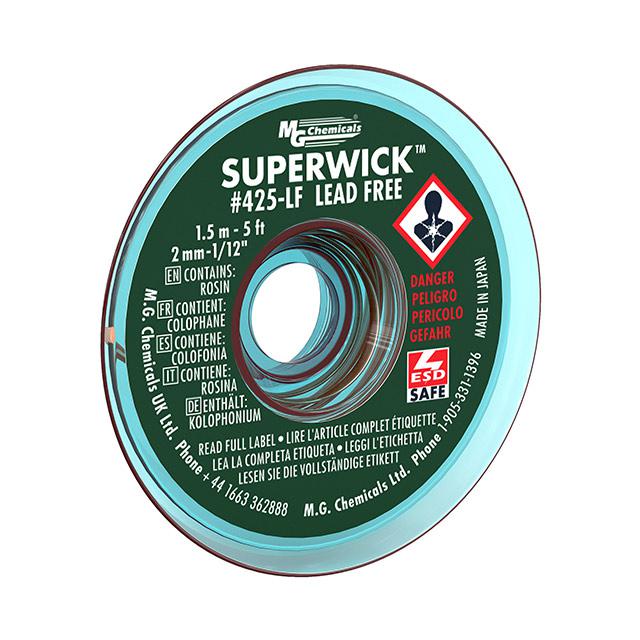This is manufactured by MG Chemicals. The manufacturer part number is 425-LF. It is assigned with possible HTSUS value of 7413.00.1000. The product is rohs3 compliant. Furthermore, the product is 0.075" (1.91mm) wide. The product is highly reliable with a long-lasting period of 60 months. It comes in rosin, mildly activated (rma), lead free configuration. In addition, it is reach unaffected. Its warranty starts from date of manufacture. It offers storage features at 50°f ~ 86°f (10°c ~ 30°c). braid/wick is a versatile product designed to provide user-defined applications. The mg chemicals's product offers user-desired applications. ESD Protected - static dissipative (sd). Its typical moisture sensitivity level is not applicable. Its accurate length is 5' (1.524m). It has a long 2 weeks standard lead time. It has a classic green colour. The product superwick, 400lf, is a highly preferred choice for users. In addition, spool is the available packaging type of the product. The product is designated with the ear99 code number.