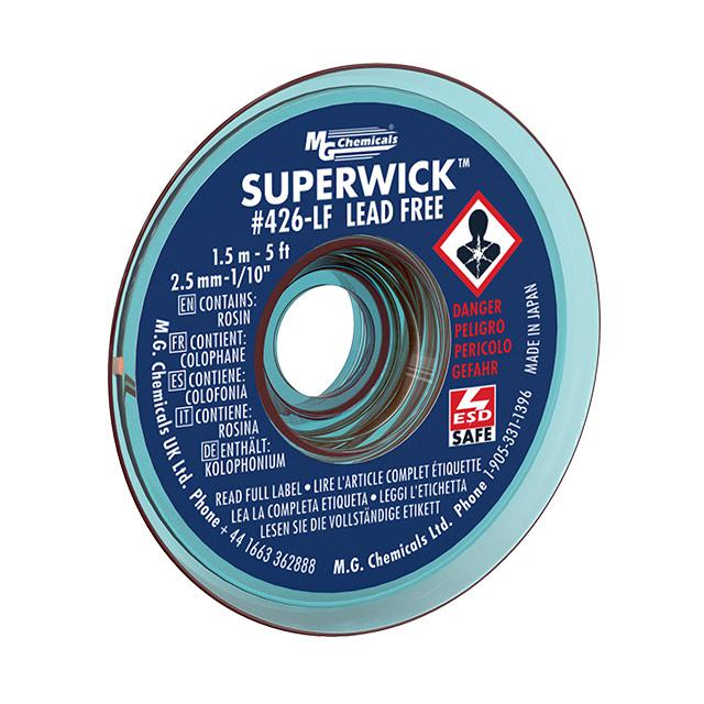 This is manufactured by MG Chemicals. The manufacturer part number is 426-LF. It is assigned with possible HTSUS value of 7413.00.1000. The product is rohs3 compliant. Furthermore, the product is 0.100" (2.54mm) wide. The product is highly reliable with a long-lasting period of 60 months. It comes in rosin, mildly activated (rma), lead free configuration. In addition, it is reach unaffected. Its warranty starts from date of manufacture. It offers storage features at 50°f ~ 86°f (10°c ~ 30°c). braid/wick is a versatile product designed to provide user-defined applications. The mg chemicals's product offers user-desired applications. ESD Protected - static dissipative (sd). Its typical moisture sensitivity level is not applicable. Its accurate length is 5' (1.524m). It has a long 2 weeks standard lead time. It has a classic blue colour. The product superwick, 400lf, is a highly preferred choice for users. In addition, spool is the available packaging type of the product. The product is designated with the ear99 code number.