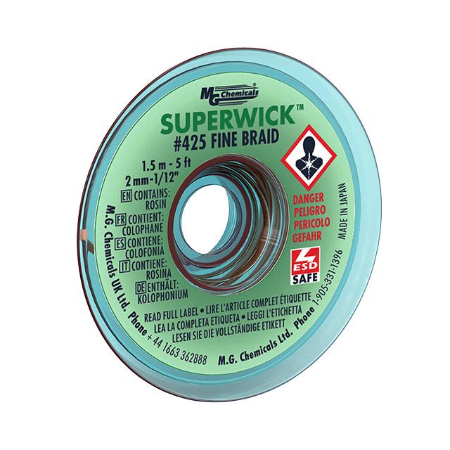 This is manufactured by MG Chemicals. The manufacturer part number is 425. It is assigned with possible HTSUS value of 7413.00.1000. The product is rohs3 compliant. Furthermore, the product is 0.075" (1.91mm) wide. The product is highly reliable with a long-lasting period of 60 months. It comes in rosin, mildly activated (rma) configuration. In addition, it is reach unaffected. Its warranty starts from date of manufacture. It offers storage features at 50°f ~ 86°f (10°c ~ 30°c). braid/wick is a versatile product designed to provide user-defined applications. The mg chemicals's product offers user-desired applications. ESD Protected - static dissipative (sd). Its typical moisture sensitivity level is not applicable. Its accurate length is 5' (1.524m). It has a long 2 weeks standard lead time. It has a classic green colour. The product superwick, 400, is a highly preferred choice for users. In addition, bulk is the available packaging type of the product. The product is designated with the ear99 code number.