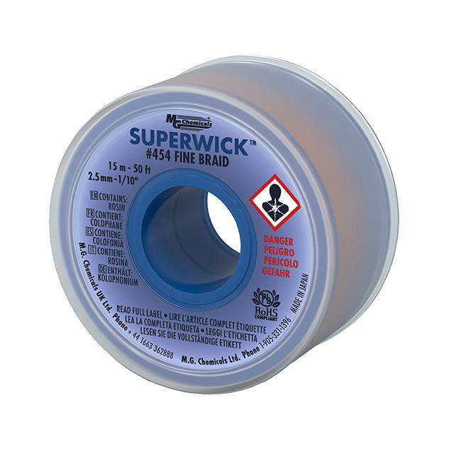 This is manufactured by MG Chemicals. The manufacturer part number is 454. It is assigned with possible HTSUS value of 7413.00.1000. The product is rohs3 compliant. Furthermore, the product is 0.100" (2.54mm) wide. The product is highly reliable with a long-lasting period of 60 months. It comes in rosin, mildly activated (rma) configuration. In addition, it is reach unaffected. Its warranty starts from date of manufacture. It offers storage features at 50°f ~ 86°f (10°c ~ 30°c). braid/wick is a versatile product designed to provide user-defined applications. The mg chemicals's product offers user-desired applications. ESD Protected - static dissipative (sd). Its typical moisture sensitivity level is not applicable. Its accurate length is 50' (15.24m). It has a long 2 weeks standard lead time. It has a classic blue colour. The product superwick, 400, is a highly preferred choice for users. In addition, bulk is the available packaging type of the product. The product is designated with the ear99 code number.