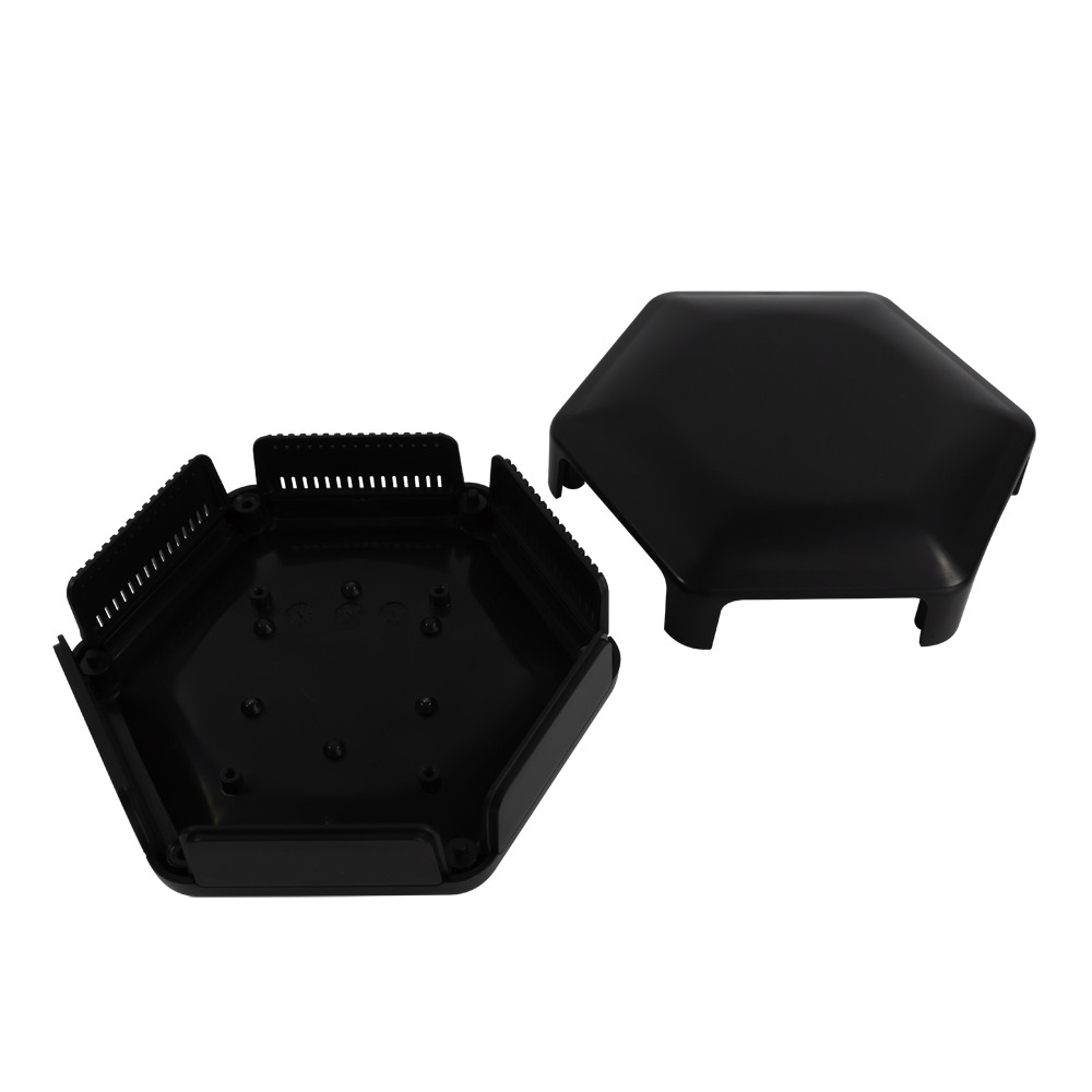 This is Enclosure for Raspberry Pi Black manufactured by CAMDENBOSS. The manufacturer part number is CBHEX1-33-BK. The product is highly suitable for raspberry pi. It has a decent black colour. Features 146 x 130 x 45mm external caliber. The product's body is nicely designed from abs materials.