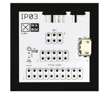 This is SWD/JTAG/SPI/USB Interface Module manufactured by XinaBox. The manufacturer part number is IP03.