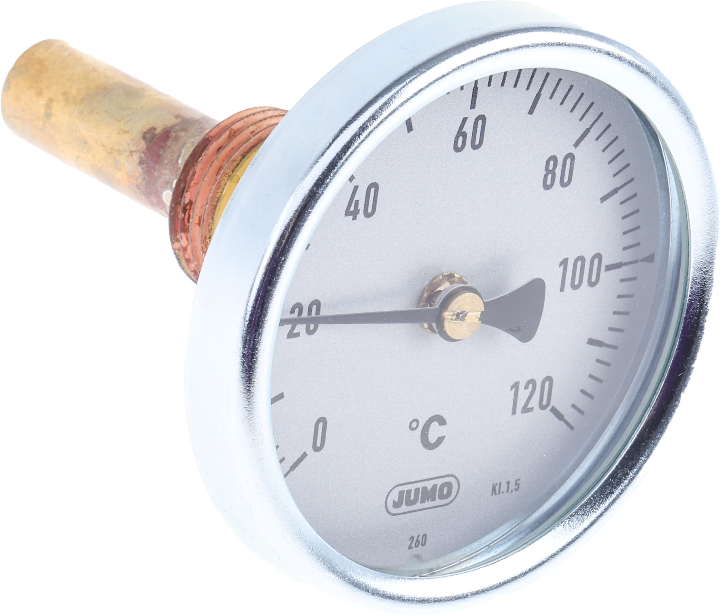 This is Dial Thermometer Centigrade Scale 0 → +120 °C Immersion manufactured by Jumo. The manufacturer part number is 608001/0163-818-913-12-104-46-46-50/000. Applications Information involves local temperature measurement. Additionally, it has a maximum +120 °c temperature measurement . It has a/an immersion type thermometer . Additionally, it exhibits centigrade temperature scale .