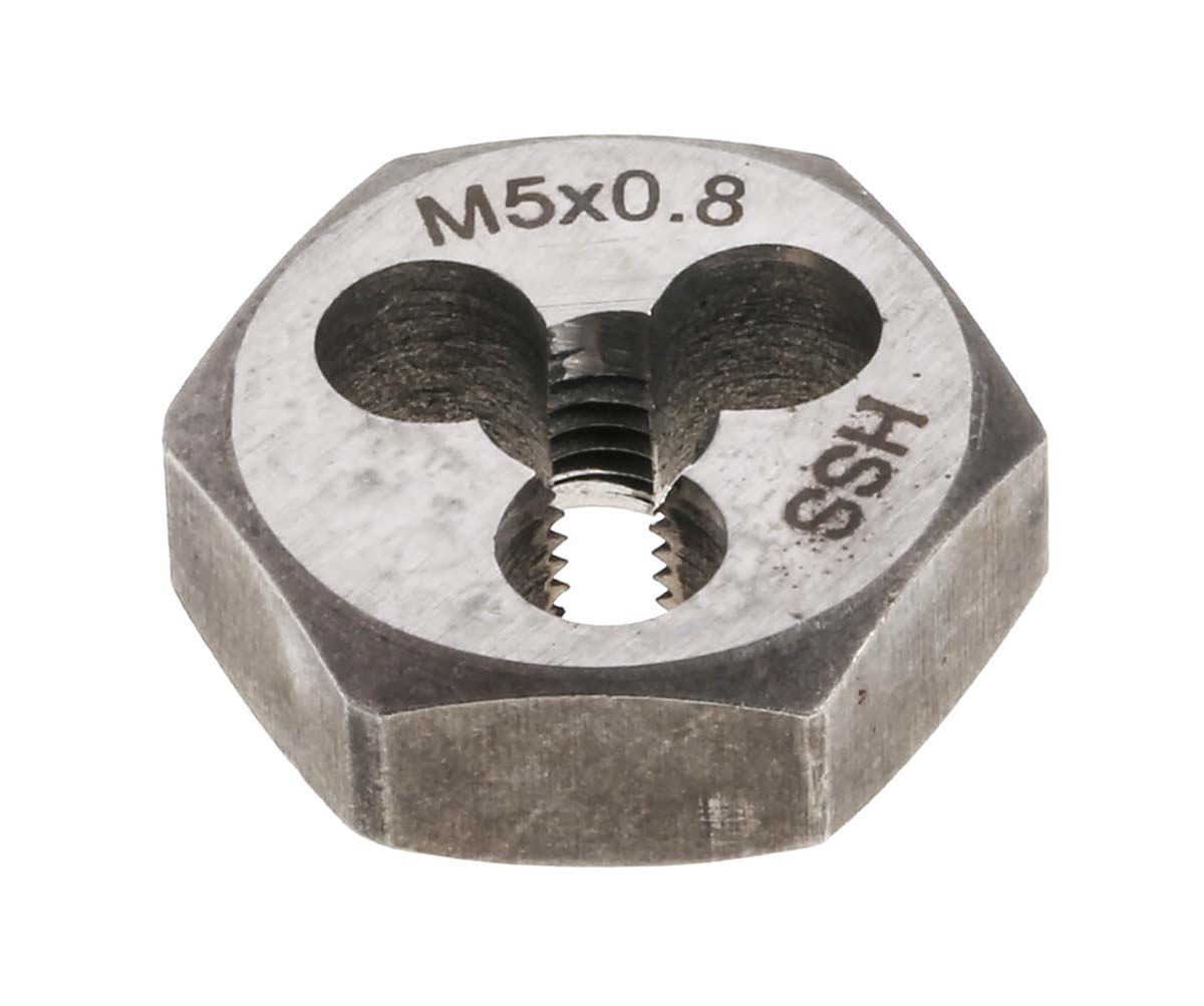This is 0.8mm Pitch M5 HSS Die Nut manufactured by RS Pro. The manufacturer part number is 424-235. The product is made from highly stable and reliable hss. It is 0.25in thick. It has a typical thread size of m5. 0.71in is the Diameter Across Flats of the product . Moreover, the product is 0.8mm. The product consists of 1 pieces.