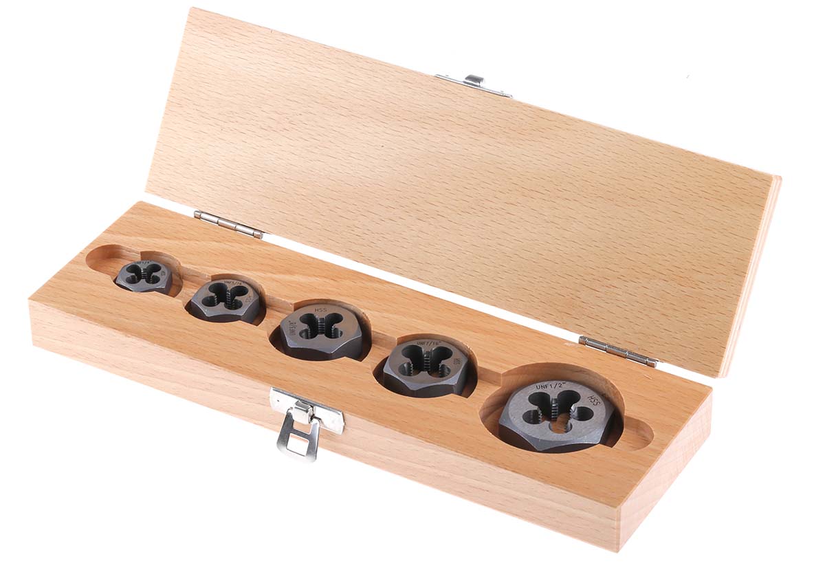 This is 5 piece Carbon Steel 1/4 → 1/2 in UNF Die Nut Set manufactured by RS Pro. The manufacturer part number is 300-7521. It has a typical thread size of 1/4 to 1/2 in unf. The product is made from highly stable and reliable carbon steel. die nut set is a versatile product designed to provide user-defined applications. The product consists of 5 pieces.