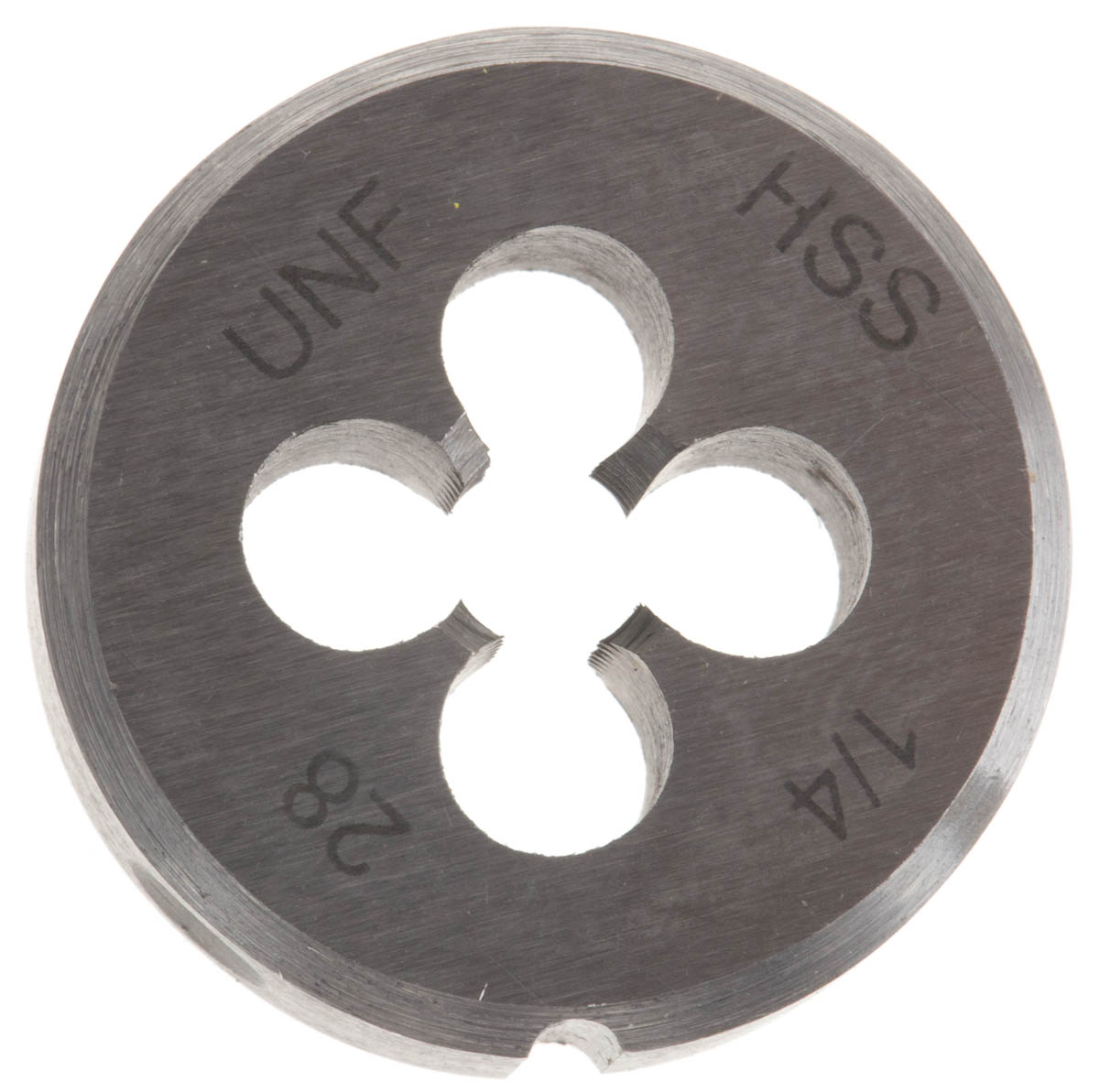 This is 1/4-28 UNF Die 25.4mm od manufactured by RS Pro. The manufacturer part number is 668-0747. It has a typical thread size of 1/4-28 unf. The product is made from highly stable and reliable hss. The product has 25.4mm external diameter. It is 9mm thick.