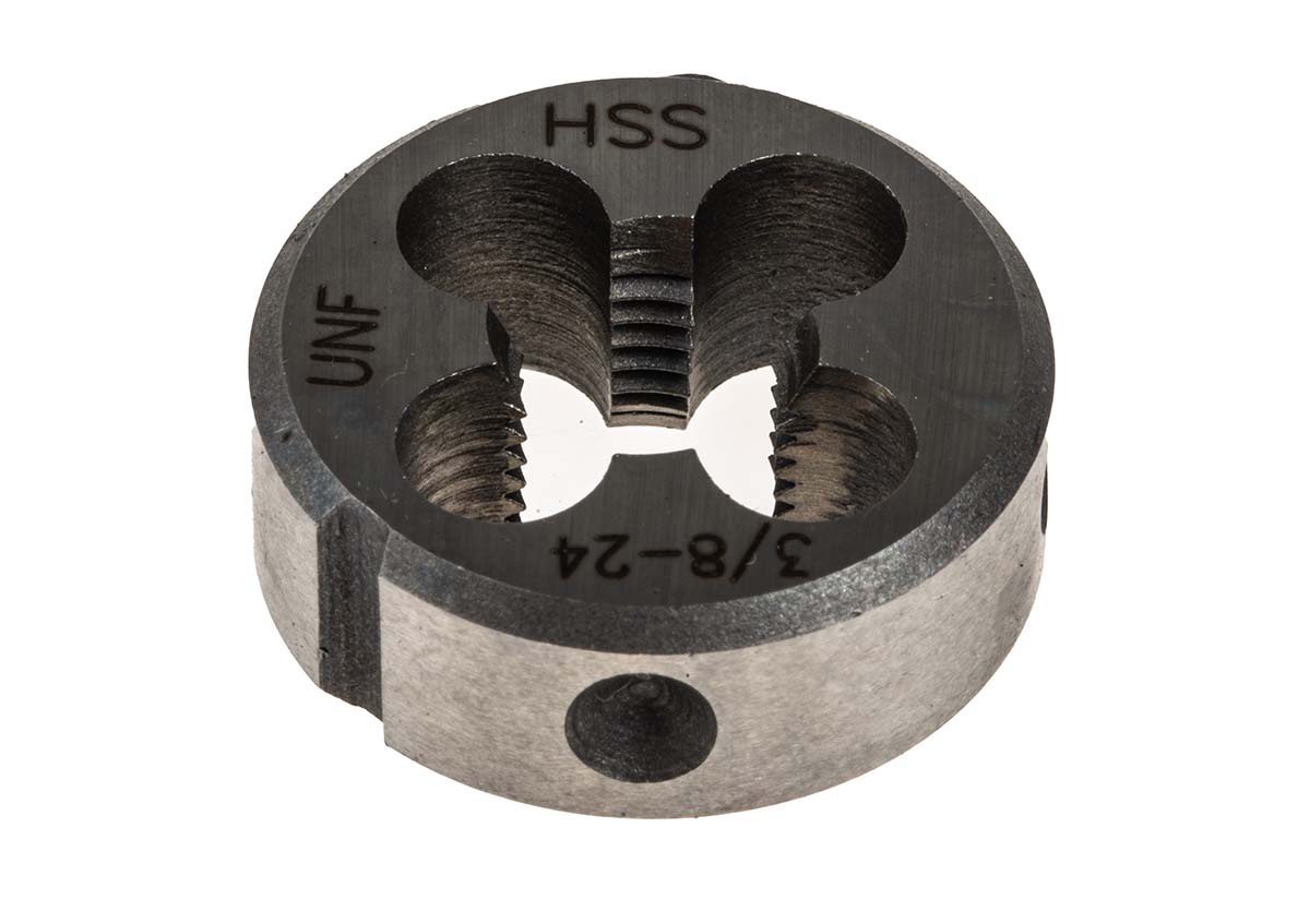 This is 3/8-24 UNF Die 25.4mm od manufactured by RS Pro. The manufacturer part number is 668-0740. It has a typical thread size of 3/8-24 unf. The product is made from highly stable and reliable hss. The product has 25.4mm external diameter. It is 9mm thick.