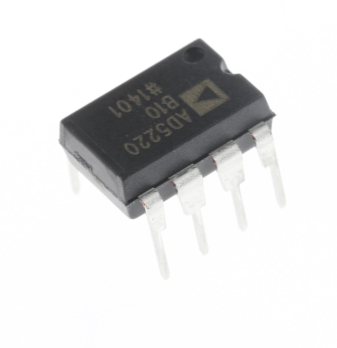 This is Digital Potentiometer 10kΩ 128-Position Serial-3 Wire 8-Pin PDIP manufactured by Analog Devices. The manufacturer part number is AD5220BNZ10. The product carries possible position value of 128. The given dimensions of the product include 9.27 x 7.24 x 3.43mm. The product is available in through hole configuration. It is a type of single power supply. Its resistance value is 10kω . It has a typical single supply voltage of 3 v, 5 v. In addition, the height is 3.43mm. It is a type of volatile memory type. Furthermore, the product is 7.24mm wide. Its accurate length is 9.27mm. The package is a sort of pdip. Whereas, the minimum operating temperature of the product is -40 °c. It incorporates a serial-3 wire control interface. It has a maximum operating temperature of +85 °c. It contains 8 pins. It contains 1 pots per package .
