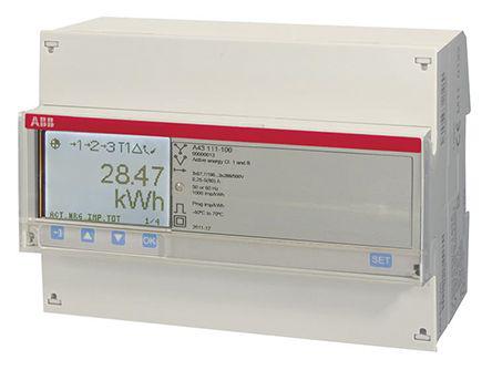 This is A LCD Digital Power Meter 3 Phase Class 1 % Accuracy manufactured by ABB. The manufacturer part number is A43 111-100. It features a remarkable lcd display. A bespoke product is a robust electromechanical meter with various applications. The product a, is a highly preferred choice for users. Its measurement range is 57.7 → 500v ac . While its minimum temperature is -40°c. The product comes in 65mm depth. The product has +70°c maximum temperature. In addition, it has a pulse output characteristic yes . The product complies with en 50470-1, en 50470-3, en 55022, gb 4208-2008, gb/t 17215.211-2006, gb/t 17215.321-2008 class 1 & 2, gb/t 17215.322-2008 class 0 & 5 s, iec 6, iec 60060-1, iec 60529, iec 60695-2-1, iec 61000-4-3, iec 61000-4-4, iec 61000-4-5, iec 61000-4-6, iec 62052-11. Its meter accuracy is class 1 % . Whereas it is comprised of 3 phases.