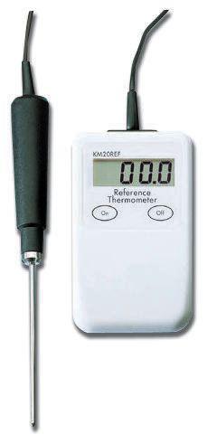 This is KM20 Digital Thermometer 1 Input Handheld PT100 Type Input manufactured by Comark. The manufacturer part number is KM20REF. The probe is basically a pt100 probe. In addition, it is offered with ±0.2 °c best accuracy . The typical product's weight is 180g. It has a/an wired type thermometer . It has a model number km20. It is calibrated rscal . Additionally, it exhibits centigrade temperature scale . This 9v battery is comparatively much efficient than common batteries. Whereas, the absolute maximum temperature measurement is +199.9°c . Features 0.1 °c resolution. It has 1 temperature inputs .