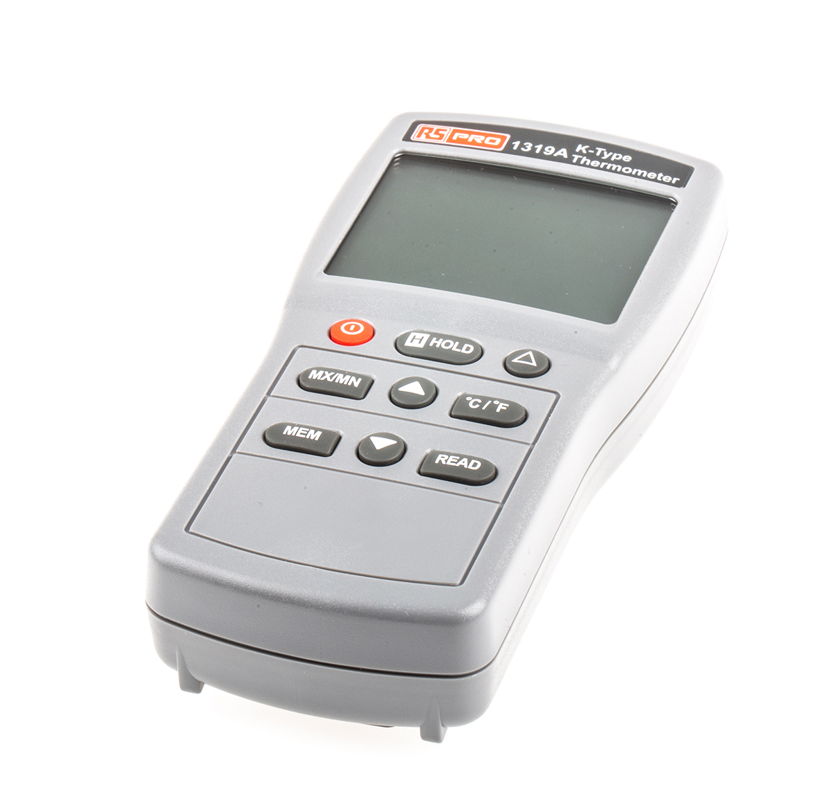This is 1319A Digital Thermometer 1 Input Handheld K Type Input manufactured by RS Pro. The manufacturer part number is 123-2215. The probe is basically a k probe. In addition, it is offered with 0.3 % ± 1 °c, 0.3 % ± 2 °f best accuracy . The typical product's weight is 235g. It has minimum/maximum recordings yes . It has a/an wired type thermometer . It has a model number 1319a. In addition, the height is 150mm. Furthermore, the product is 35mm wide. Its accurate length is 72mm. It has 1 temperature inputs . Additionally, it exhibits centigrade, fahrenheit temperature scale . This aaa battery is comparatively much efficient than common batteries. Whereas, the absolute maximum temperature measurement is +1300 °c, +1999°f . Features 0.1 °c, 0.1 °f resolution. It has a data storage feature yes .