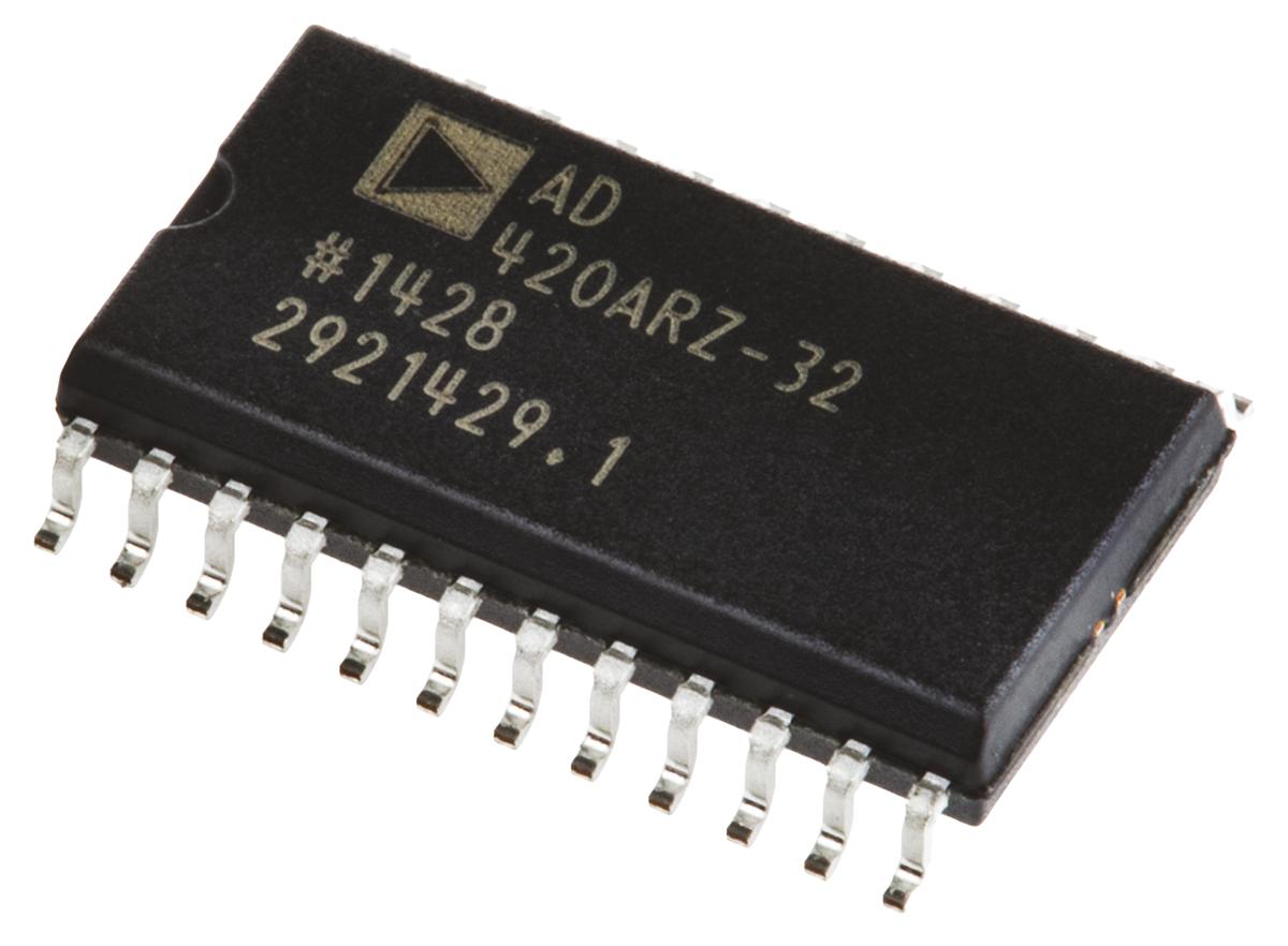 This is 16 bit Serial DAC 400sps 24-Pin SOIC manufactured by Analog Devices. The manufacturer part number is AD420ARZ-32. Its conversion rate is 400sps . Its integral nonlinearity error is ±0.012%fsr . The given dimensions of the product include 15.6 x 7.6 x 2.65mm. The product is available in surface mount configuration. Additionally, it includes 1 standard DAC channels . It is a type of single power supply. Whereas, the minimum operating temperature of the product is -40 °c. The product has a maximum 3ns setting time . Additionally, the product has a/an serial (spi) type digital interface . It has a typical single supply voltage of 32 v. The package is a sort of soic. The product has been designed as delta sigma. It has bipolar polarity . The product has external voltage reference. It has a maximum operating temperature of 85 °c. Features 16 bit resolution. It contains 24 pins.