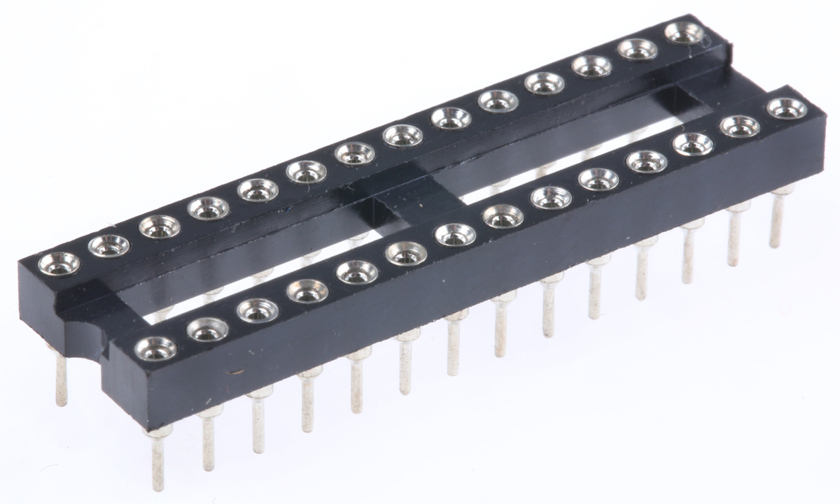 This is 2.54mm Pitch Vertical 28 Way Through Hole Turned pin Open Frame IC Dip Socket 5A manufactured by Winslow. The manufacturer part number is W30528/3TTRC. Its row is 7.62mm in width . The product contains 28 contacts. The product has a current rating of 5a. The given dimensions of the product include 35.48 x 4.6 x 10.14mm. The product is available in through hole configuration. The product is made from sturdy beryllium copper materials. It allows solder termination method. Its accurate length is 35.48mm. The product also features robust pbt housing material. Furthermore, the product is 4.6mm wide. The product comes in 10.14mm depth. The high-quality tin is used as contact plating material. Moreover, the product is 2.54mm. The product has a vertical orientation. The frame is designed as [Fram Type] type. It has a maximum operating temperature of +150°c. Whereas, the minimum operating temperature of the product is -65°c. It contains a turned type pin .