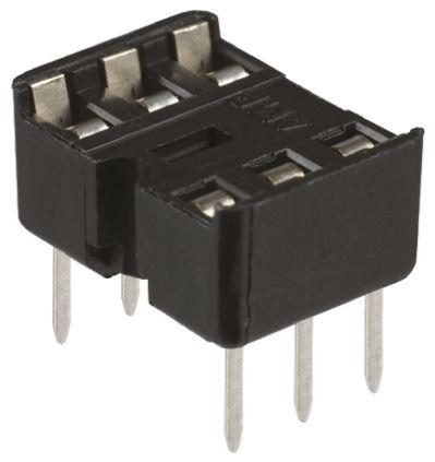 This is Diplomate 2.54mm Pitch Vertical 6 Way Through Hole Stamped Pin Closed Frame IC Dip Socket manufactured by TE Connectivity. The manufacturer part number is 1-1825093-1. Its row is 7.62mm in width . The product contains 6 contacts. The product has a vertical orientation. The product is available in through hole configuration. The product diplomate, is a highly preferred choice for users. The product is made from sturdy beryllium copper materials. It allows solder termination method. The high-quality gold is used as contact plating material. Moreover, the product is 2.54mm. It contains a stamped type pin . The frame is designed as [Fram Type] type.