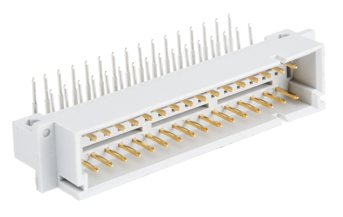 This is 32 Way 2.54mm Pitch Type C/2 Class C2 2 Row Right Angle DIN 41612 Connector Plug manufactured by RS Pro. The manufacturer part number is 251-302. It comes in 2 of rows. Furthermore, the product has c2 class rating . The product has a current rating of 1.5a. Whereas, the minimum operating temperature of the product is -55°c. The product is available in through hole configuration. Moreover, the product has a nominal 1 kv ac voltage rating. In addition, male is the available "Gender" of the product. It has right angle body orientation. It allows solder termination method. The product also features robust pet housing material. Additionally, it has a maximum 20mω contact resistance . It contains a/c row loading . The high-quality gold over nickel is used as contact plating material. Moreover, the product is 2.54mm. The product contains 32 contacts. It comes in c/2 configuration. It has a maximum operating temperature of +125°c. The product is made from sturdy copper alloy materials.