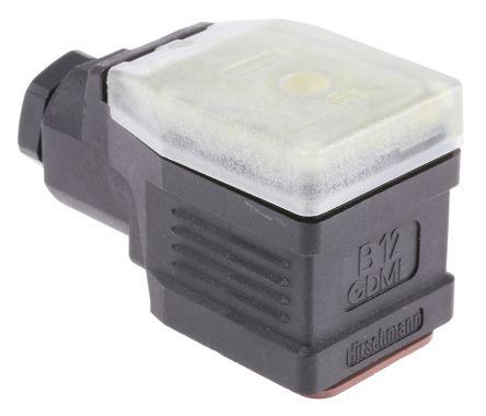 This is 2P+E DIN 43650 A Solenoid Valve Connector Female Central Nut GDME Series 16A 250 V dc 400 V ac IP65 manufactured by Hirschmann. The manufacturer part number is 933029100+730801002. The product has a current rating of 16a. It is of din 43650 a type . The product is available in central nut configuration. It is IP rated with ip65. In addition, female is the available "Gender" of the product. It has a decent black colour. Moreover, the product has a nominal 250 v dc, 400 v ac voltage rating. While the pole has 2p+e format. It allows screw down termination method. The diameter of the cable includes 4.5 → 11mm. Moreover, it has pg11 size cable gland . The product gdme, is a highly preferred choice for users.