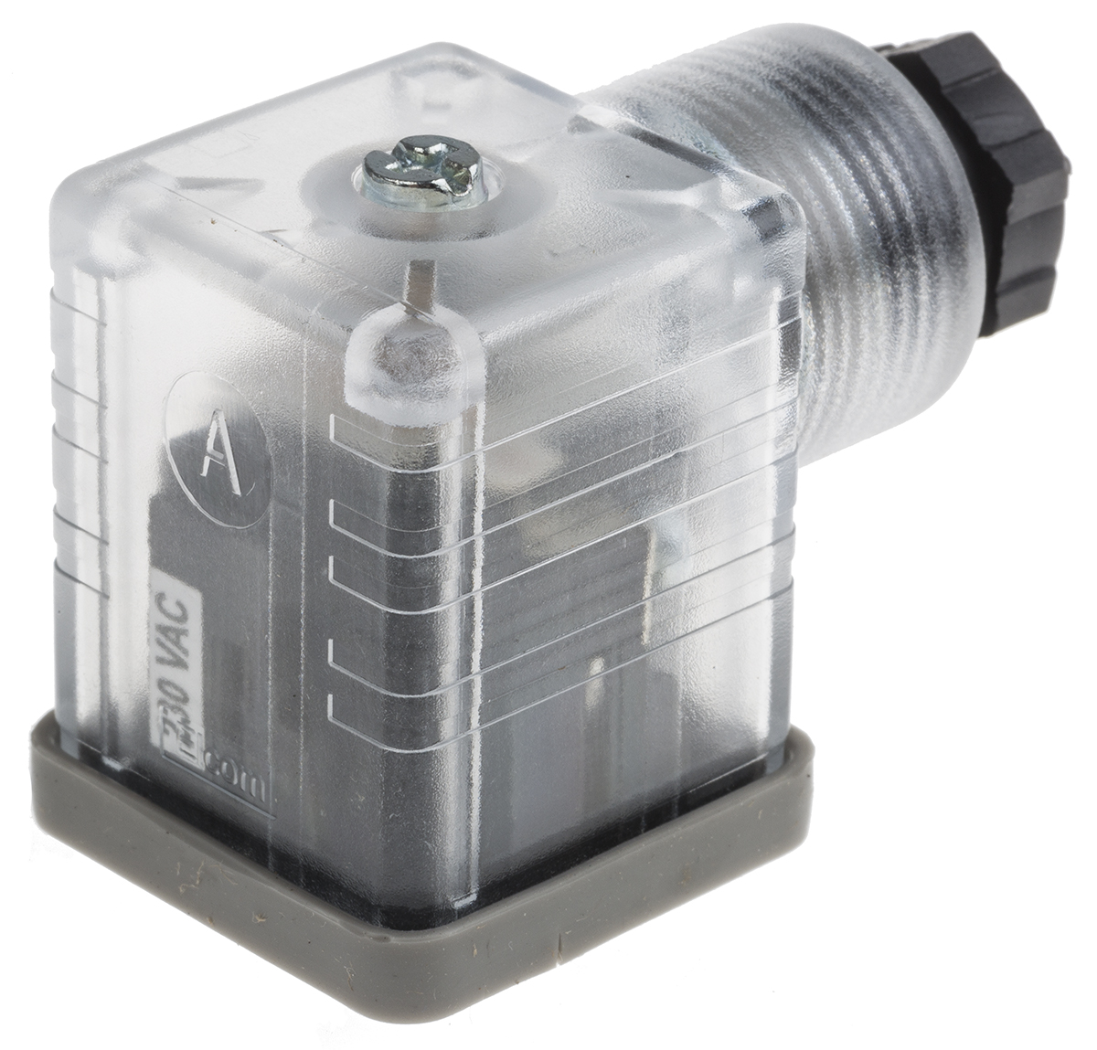 This is 2P+E DIN 43650 A Solenoid Connector Female Screw 10A 230 V ac manufactured by RS Pro. The manufacturer part number is 896-2063. It has a light indicator included yes . The product has a current rating of 10a. It is of din 43650 a type . The product is available in screw configuration. Moreover, the product has a nominal 230 v ac voltage rating. In addition, female is the available "Gender" of the product. It has a decent clear colour. While the pole has 2p+e format. Moreover, it has pg9 size cable gland .