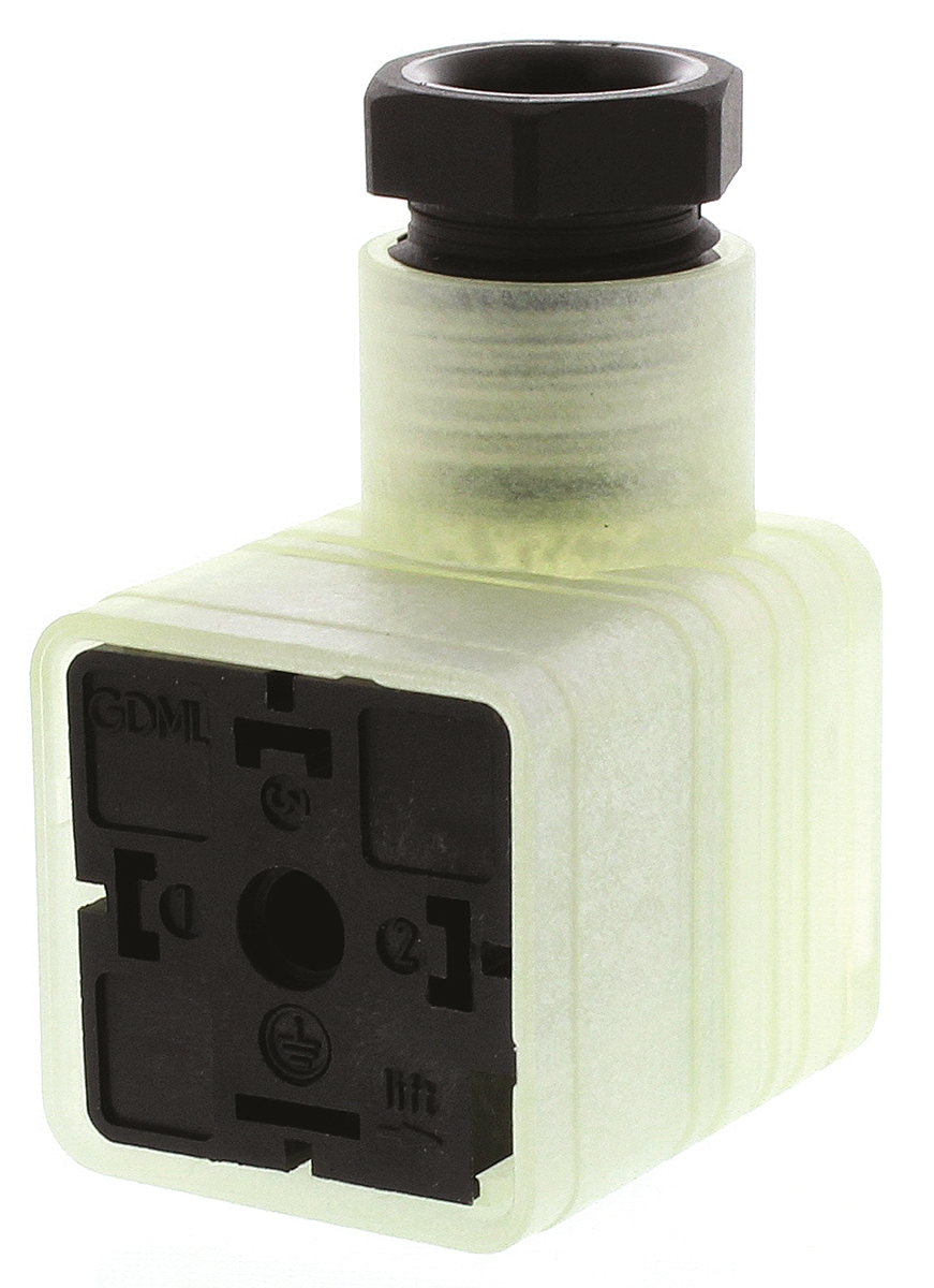 This is GDML 3P+E DIN 43650 A Female Solenoid Valve Connector 250 V Voltage manufactured by Hirschmann. The manufacturer part number is 935980333 RS GDML 3016 LED 230 RG schwarz. It has a light indicator included yes . The product has a current rating of 16a. It is of din 43650 a type . The product is available in screw down configuration. It is IP rated with ip65. In addition, female is the available "Gender" of the product. It has a decent clear colour. Moreover, the product has a nominal 250 v voltage rating. While the pole has 3p+e format. It allows screw down termination method. The diameter of the cable includes 4.5 → 10mm. Moreover, it has m16 size cable gland . The product gdml, is a highly preferred choice for users. It includes a protective circuit yes .